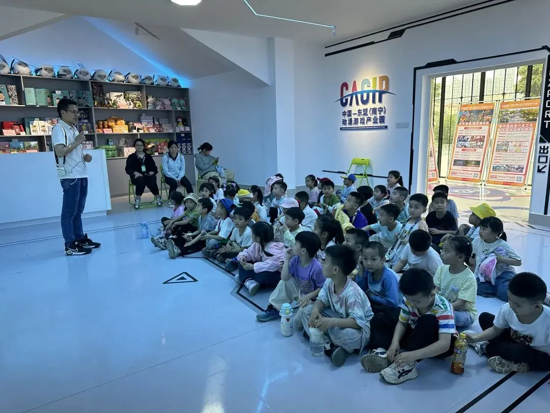 活动中,孩子们有序参观园区AI主题展厅,认真聆听工作人员讲解“灵柒柒”IP的故事,近距离感受动漫的独特魅力。参观结束后,孩子们在动漫互动区、沉浸式体验空间里尽情探索,欢声笑语不断。作为四叶草公司重点打造的AI赋能动漫+文旅标杆项目,园区以前沿科技融合动漫创意,为孩子们搭建起充满想象力的梦幻乐园。