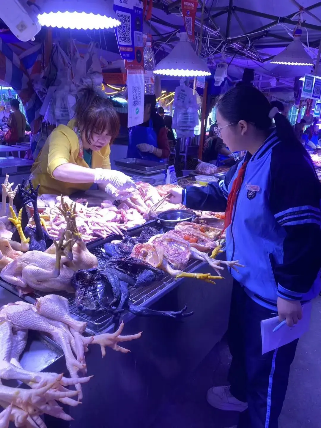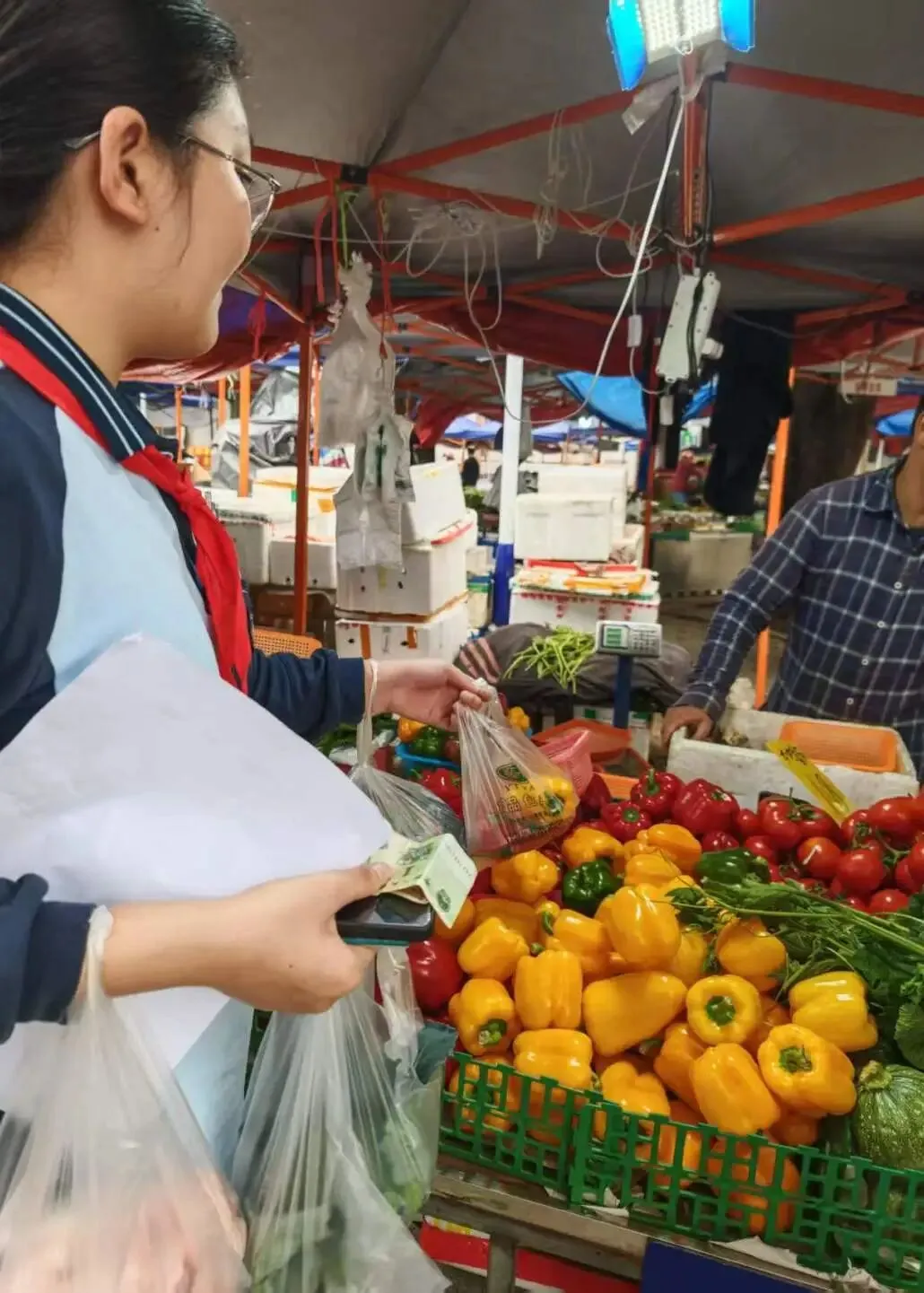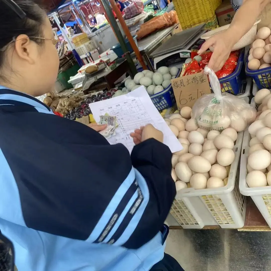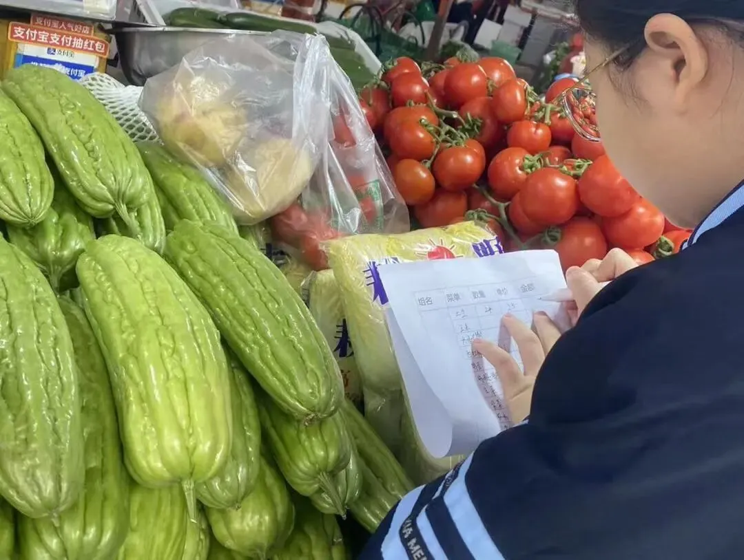 紧接着,同学们化身 “小小采购员”,带着提前列好的清单前往食材市场采购食材。大家仔细对比菜品的新鲜度、询问价格、计算费用,在讨价还价中锻炼了沟通能力与理财意识。从挑选蔬菜、肉类到确认分量,同学们认真负责,确保每一份食材都符合烹饪需求,为后续的厨房劳作做好了充足准备。