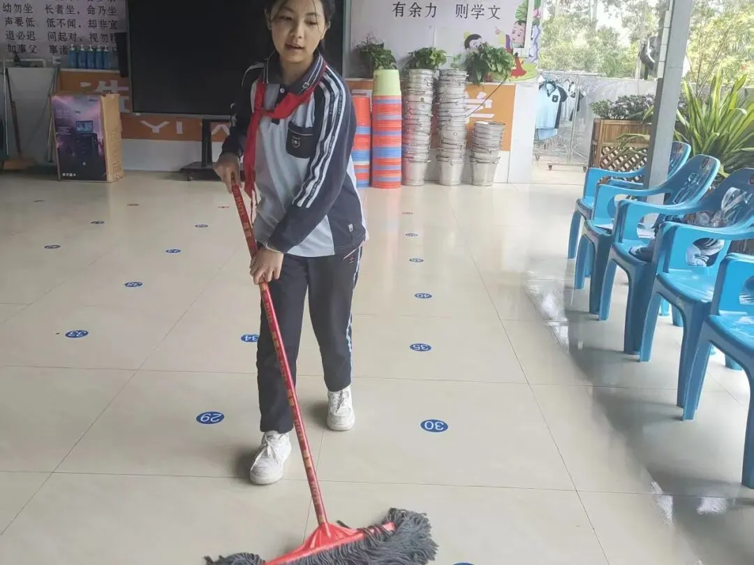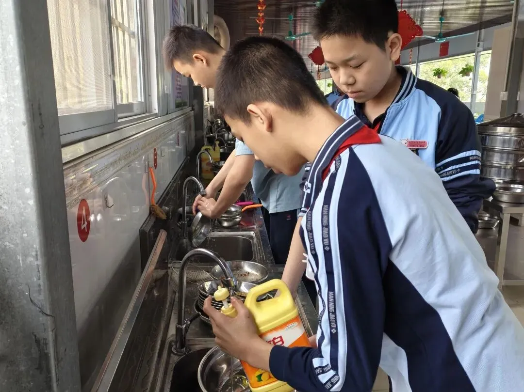 用餐结束后,同学们主动承担起餐后清理工作。擦桌子、洗碗筷、打扫地面、整理灶台,大家分工明确、配合默契,将厨房和餐厅收拾得干干净净。从烹饪到清理的完整流程,让同学们深刻认识到劳动的连贯性,也养成了 “善始善终” 的劳动习惯。