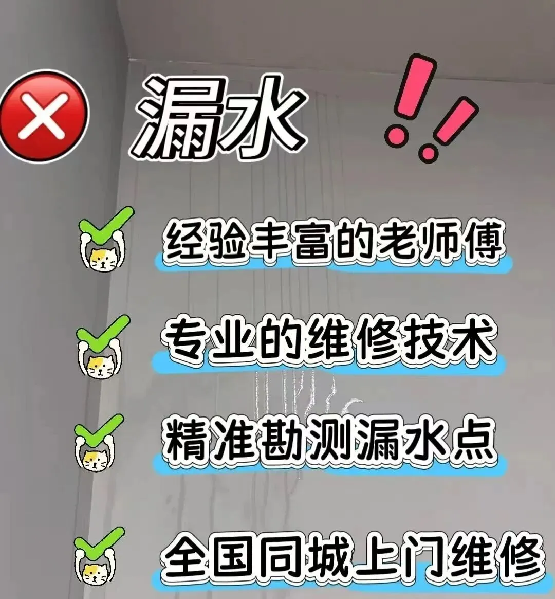 “全区域”房屋漏水问题频发,无论墙体渗水还是屋顶漏雨,专业防水补漏师傅全天候为您服务,免费检测,快速高效解决渗漏难题!
