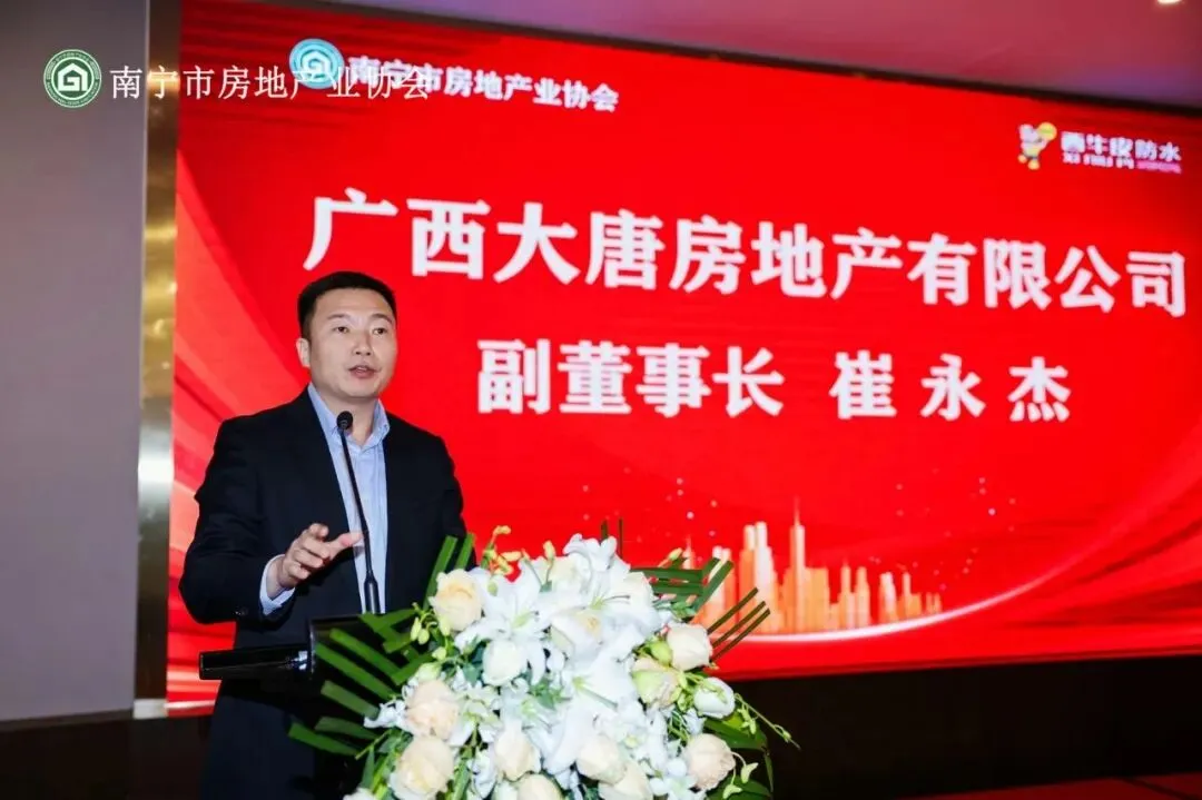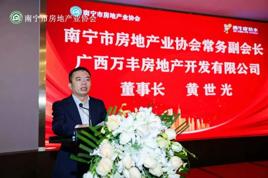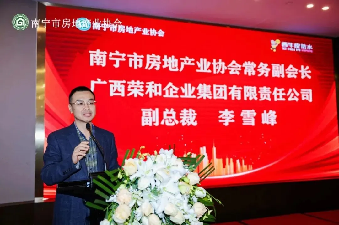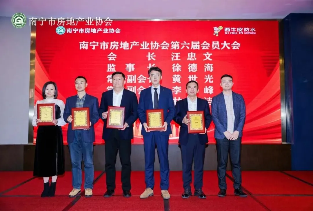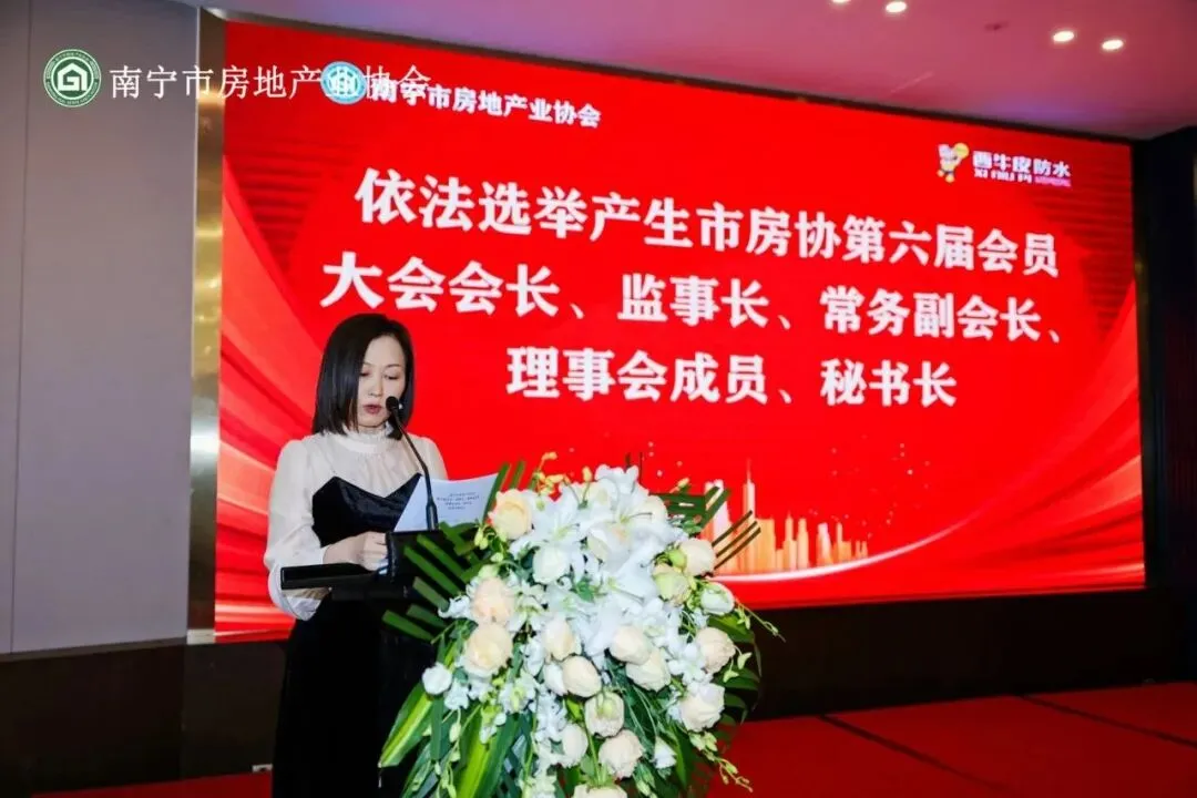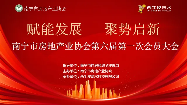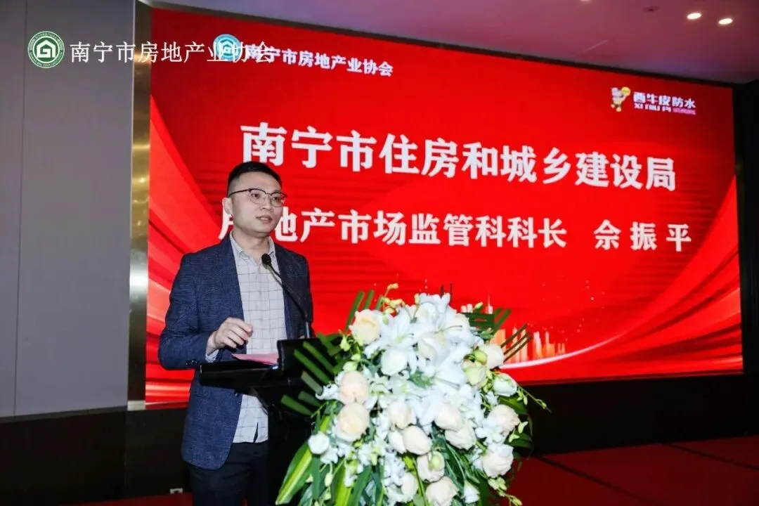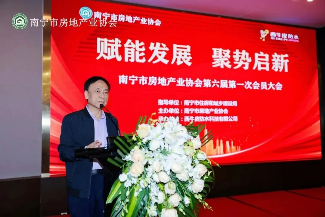 2024年1月19日,“赋能发展,聚势启新”,南宁市房地产业协会(以下简称“市房协”)第六届第一次会员大会在南宁会展豪生大酒店隆重召开。南宁市住房和城乡建设局房地产市场监管科科长佘振平、副科长韦伟,南宁市民政局四级调研员、社会组织管理科科长李春明,南宁市住房和城乡建设资金管理中心副主任朱江,南宁市房屋市场发展中心市场科副科长陈栋,南宁仲裁委员会副主任陈亿,南宁市房地产中介行业管理协会秘书长覃桂萍,西牛皮防水科技有限公司副总经理蓝宏峰,克而瑞信息集团·广西区域总经理黄海玲,自媒体“楼市花儿街”创始人黄海华等领导和嘉宾出席了会议,市房协近百家会员单位参加了此次会议。