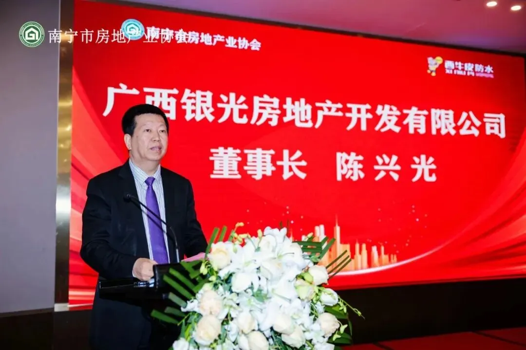大会第十项议程,由广西荣和企业集团有限责任公司副总裁李雪峰、广西银光房地产开发有限公司董事长陈兴光、广西大唐房地产有限公司副董事长崔永杰、桂林彰泰实业集团有限公司副总裁杨凯、南宁澳华房地产有限公司董事长陈孝力作为特邀嘉宾分别代表企业发言。他们对市房协一直以来的工作给予了充分的肯定,并对选举产生的新一届领导班子表示祝贺。面对当前复杂的房地产市场形势,各企业也纷纷分享各自的经验和看法,同时表示将与市房协紧密团结,共同促进我市房地产行业平稳健康发展。广西银光房地产开发有限公司董事长 陈兴光