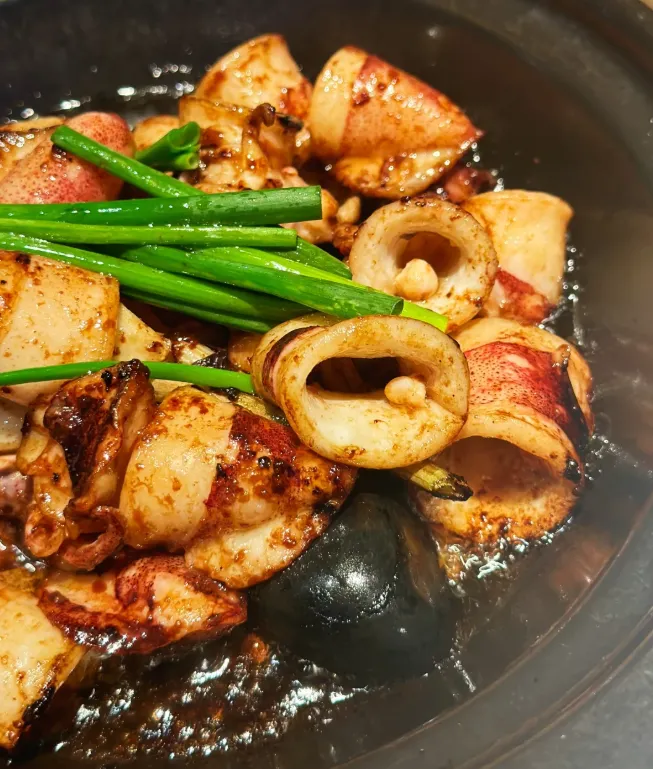 推荐一道“酸笋炒鱿鱼”。先把酸笋洗净、切细,配上葱姜蒜热油爆香,鱿鱼圈快速下锅翻炒,两分钟起锅。酸香盖住腥气,脆中带嫩,一口就能吃出南海的味道。