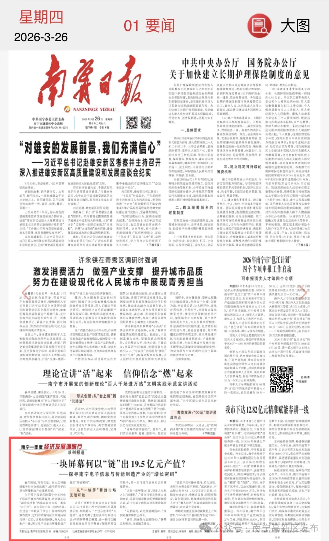 【南宁日报头版关注高新区企业】一块屏幕何以“链”出19.5亿元产值?——探寻电子信息与智能制造产业的“增长密码”