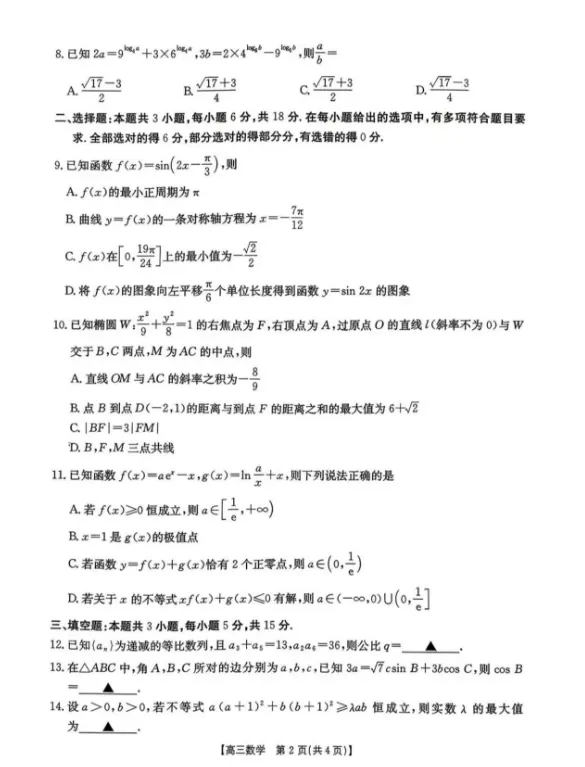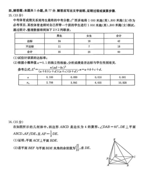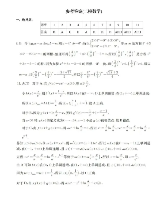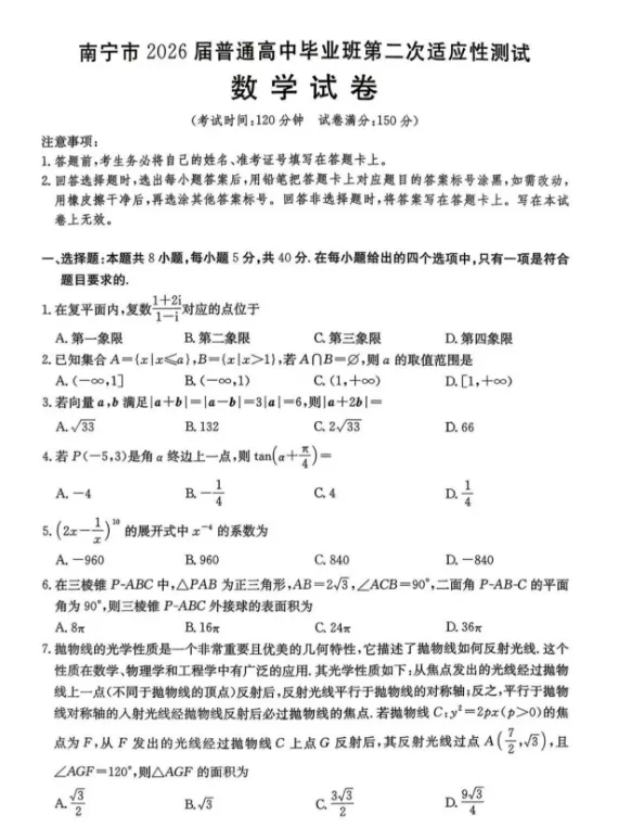 南宁市2026届普通高中毕业班第二次适应性测试数学