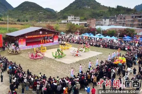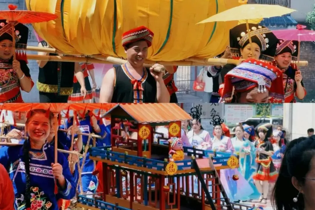 跟着队伍走一走,感受壮族人民对长寿与安康的美好祈愿,现场锣鼓喧天、彩旗飘扬,比过年还热闹
