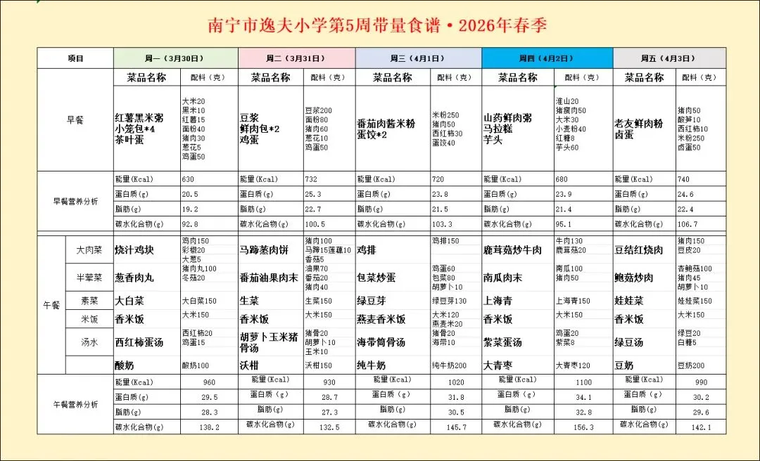 学生配餐菜单