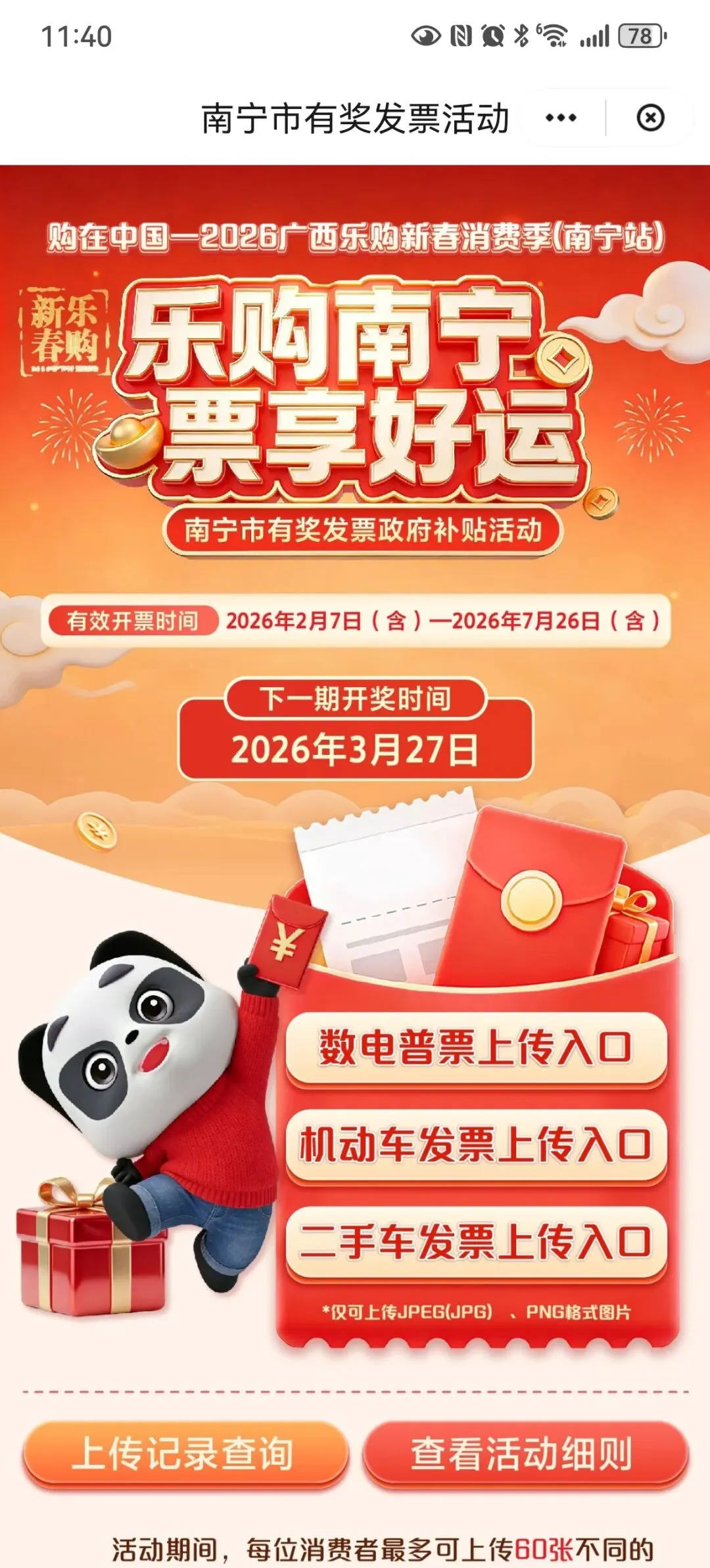 也行,广州中奖率低,深圳的3月发票次数用完了,刚好这张去参加南宁的发票抽奖。