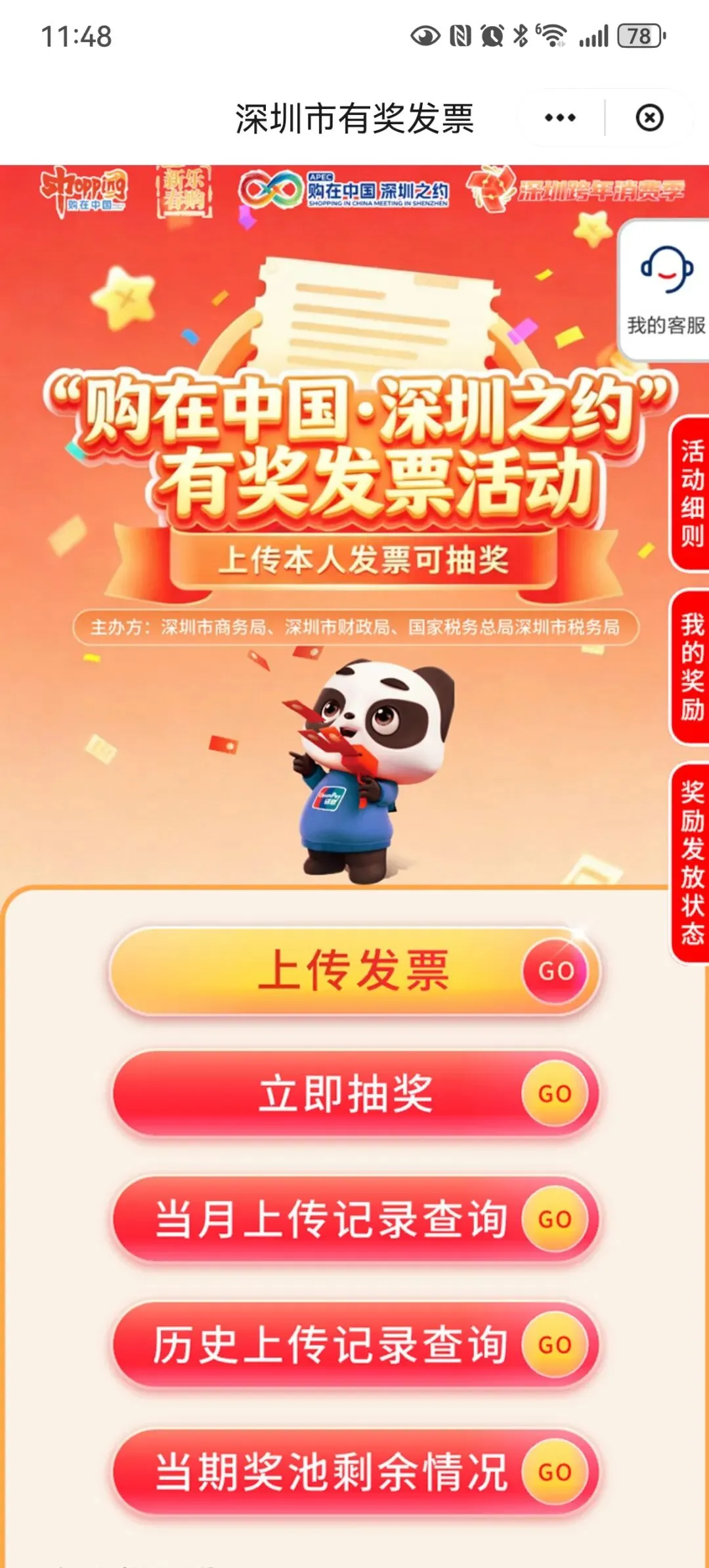 看看深圳的云闪付发票抽奖界面吧,虽然中奖率低,但方便呀。