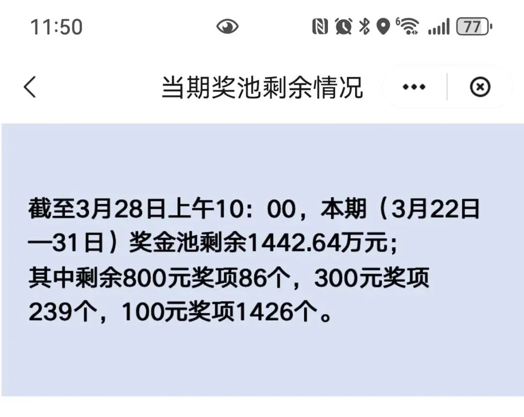 奖池里还有多少钱,也每天更新。