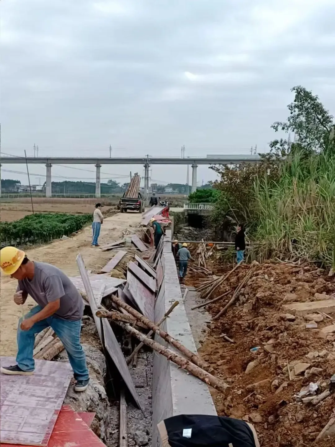 那打灌区那打西干岜狂、伏善渠段水毁修复工程现场,机械轰鸣声与工人吆喝声交织在一起,一派热火朝天的赶工景象。“工期紧、任务重,早一天修好,春灌就多一分保障。”工人们分工协作,有的搅拌水泥,有的支模浇筑,有的抹平收面,一道道工序紧密衔接。技术人员自豪的介绍:“今年以来,已修复处理渠岸塌方6处、损坏斗门1个、损坏渠段4处共240米,真正为春耕生产打通灌溉了最后一公里。