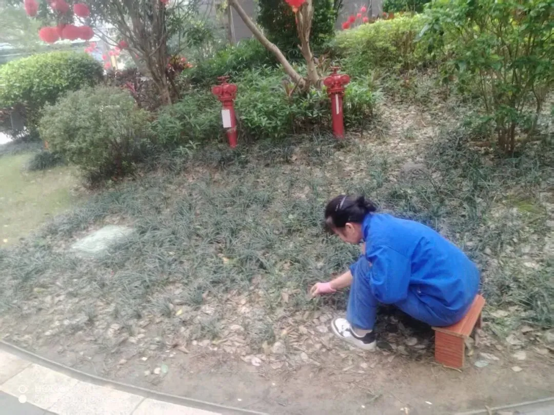 绿化阿姨定期对小区绿植修剪枯枝杂草,做好春季绿植早春养护。为美好生活环境保驾护航。