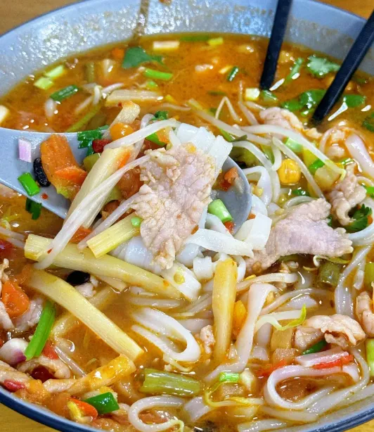 早上是米粉的时间。老友粉、酸笋鸭脚粉,汤酸辣开胃,粉筋道有嚼头。早餐摊多藏在居民区口,建议别去景区附近,味淡、价高。