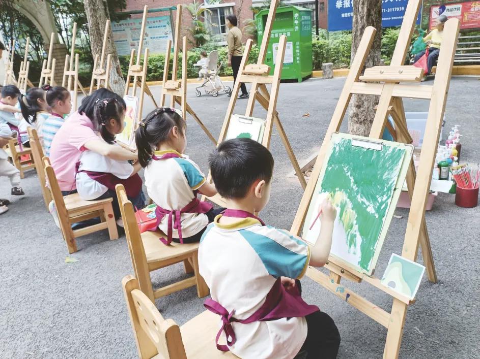 在宜居舒适的小区里,小朋友们用手中的画笔画出对美好未来的憧憬。记者韦薇 摄