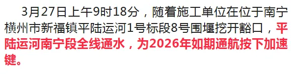 >▷平陆运河南宁段实现全线通水,钦州段通水指日可待~