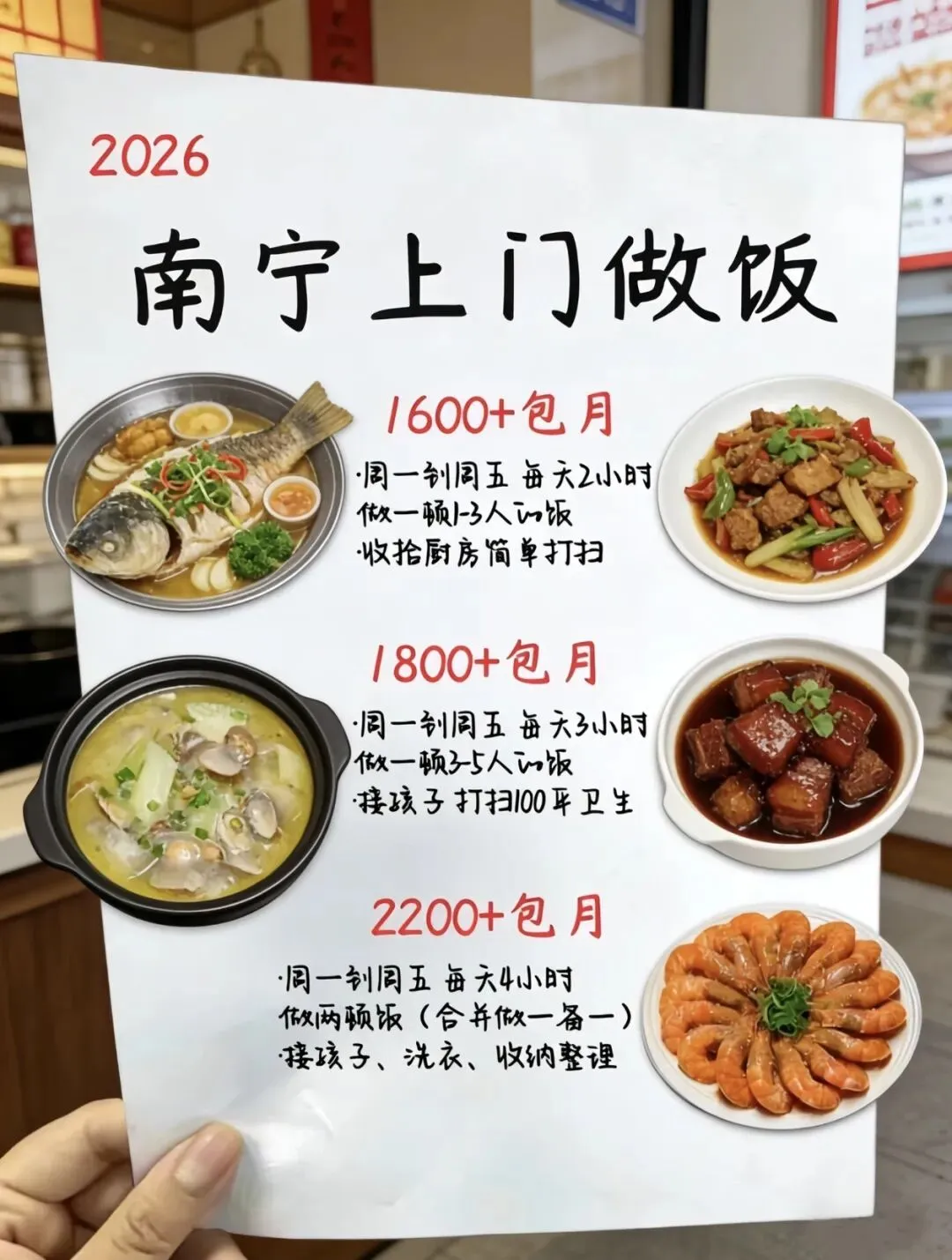 挖到一家超靠谱的上门做饭服务,简直宝藏!2026全新南宁上门做饭价目表,2 - 4小时服务实在不套路,包月1600起性价比拉满,赶紧收藏!💰 三类套餐随心挑