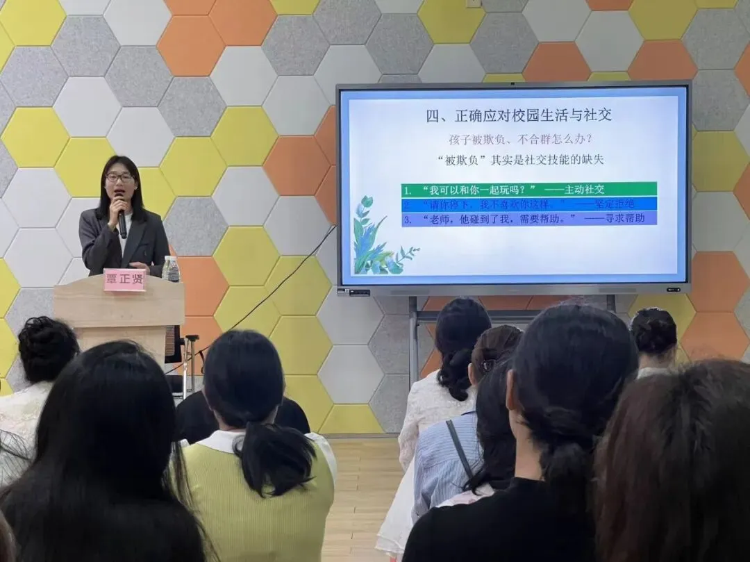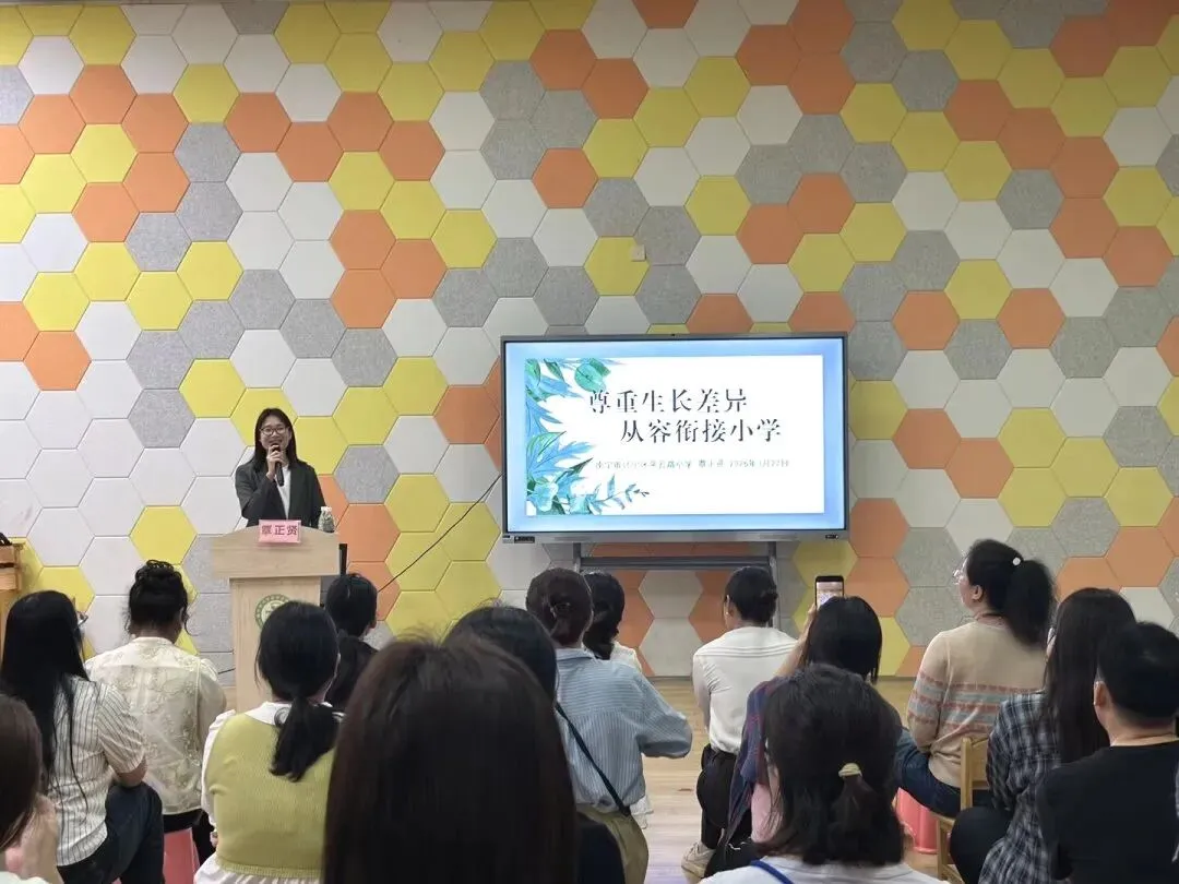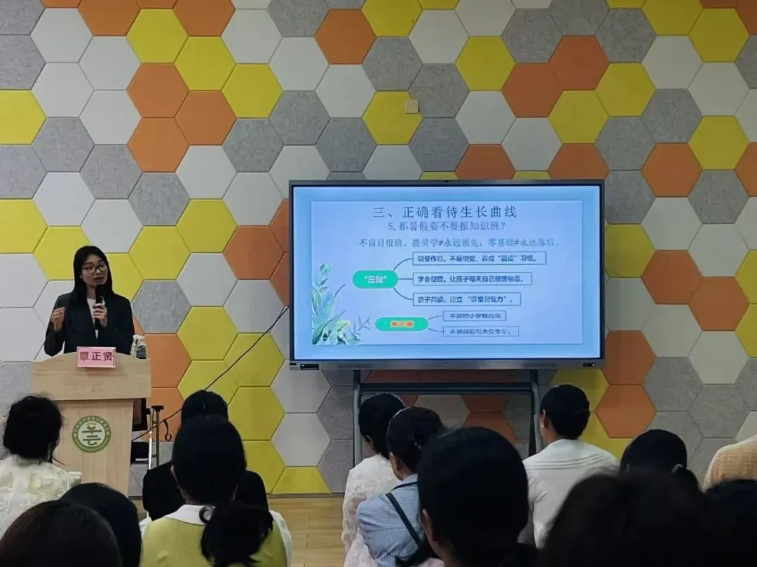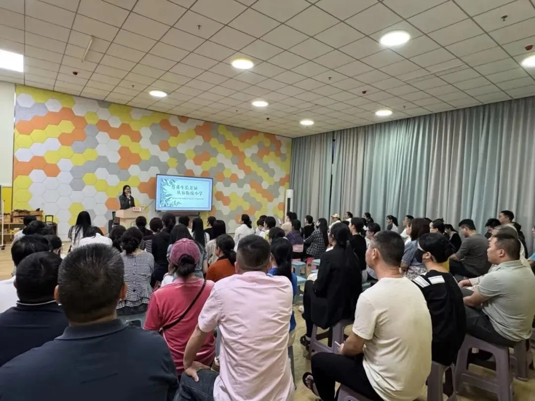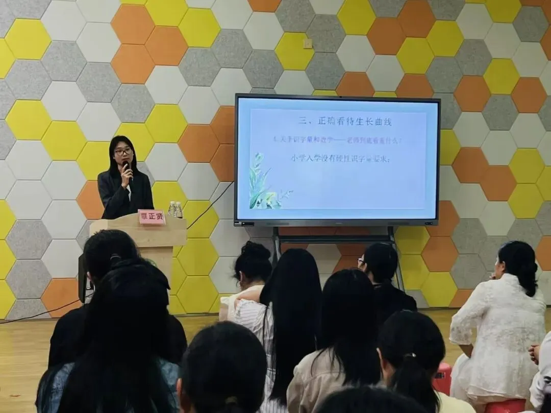 这是幼儿园时光的最后一段旅程,幼小衔接是本次会议的核心。我们邀请到南宁市兴宁区平云路小学的覃正贤老师为大班的家长开展《尊重生长差异,从容衔接小学》专题讲座,聚焦共同忐忑、家长焦虑、正确看待生长曲线、正确应对校园生活与社交、稳住心态从容衔接几大方面,引导家长树立科学衔接理念,拒绝超前化、小学化倾向。
