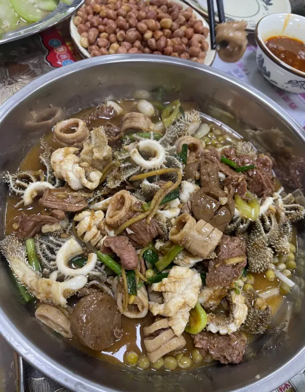 做法不复杂,但很见耐心。牛肉先切片或切条,腌过,再用香料和酱汁慢慢收味,最后炒到干香有嚼劲。不是那种硬得硌牙的肉干,而是越嚼越出香,舌尖后面会慢慢回甘。