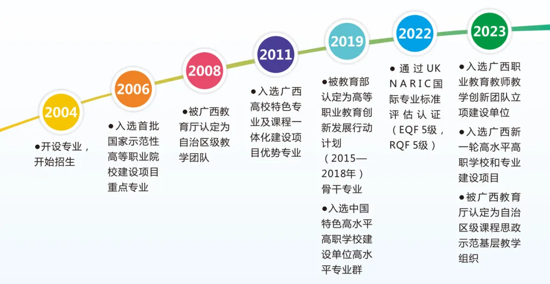 南宁职业技术学院软件技术专业至今已有21年办学历史,是中国特色高水平高职学校建设单位的高水平专业群核心专业、国家示范建设项目重点专业、国家高等职业教育创新发展行动计划(2015—2018年)骨干专业、广西优势专业。
