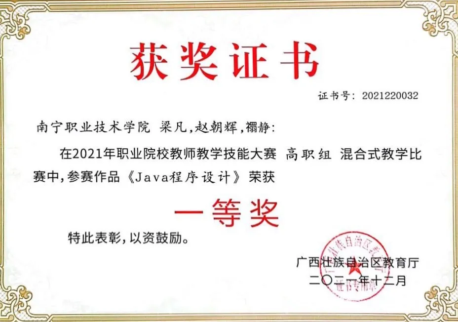 教师团队历年来荣获广西职业院校教学能力大赛一等奖2项、二等奖5项、三等奖6项