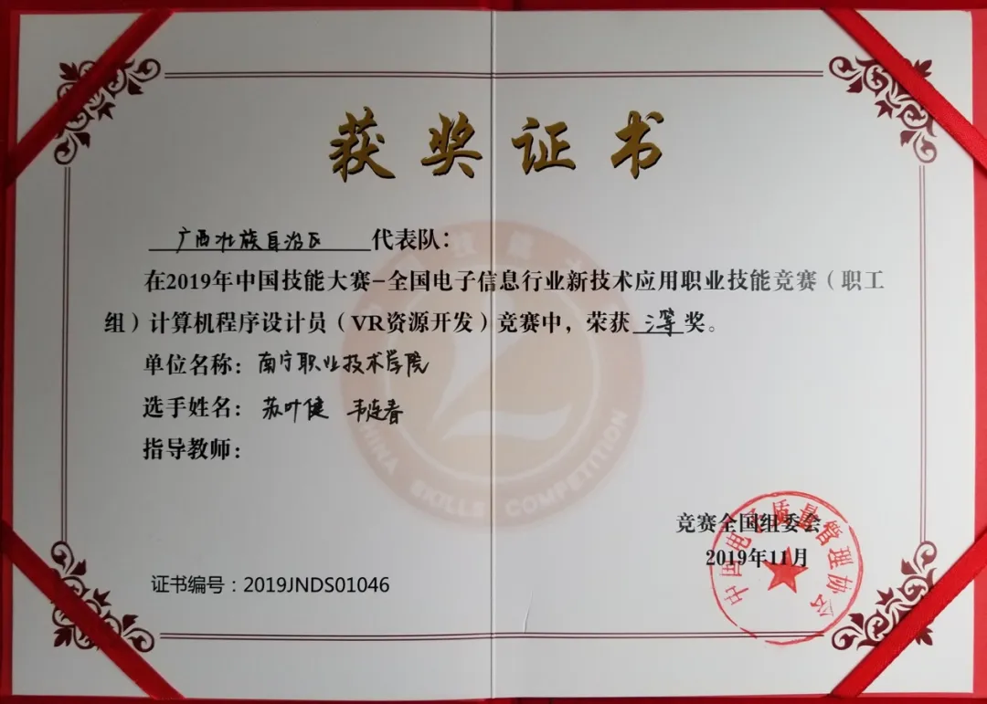 苏叶健老师荣获2019年中国技能大赛三等奖