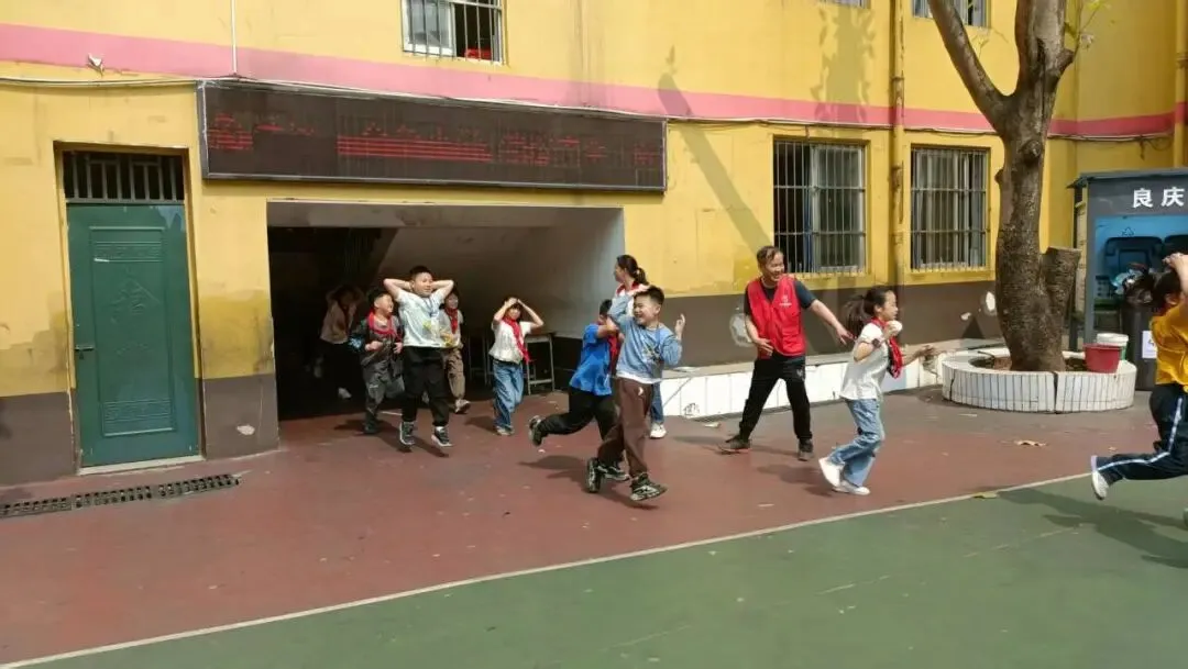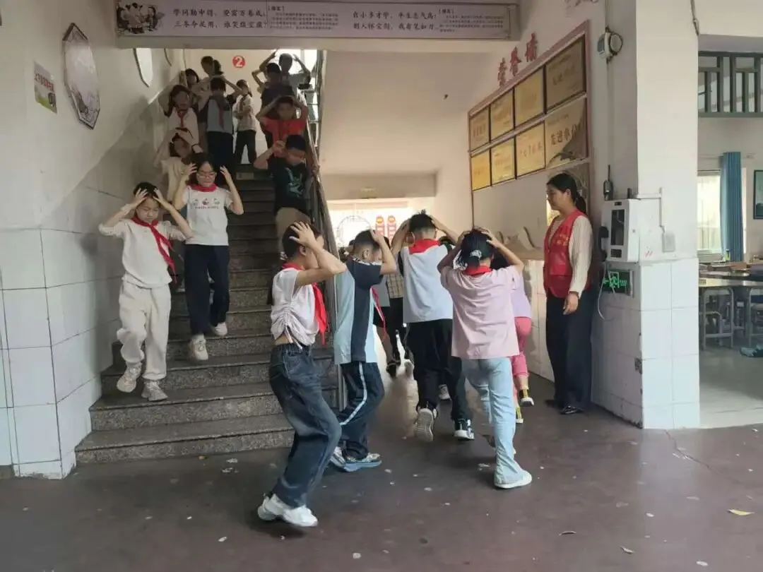 随着警报声响起后,全体师生迅速反应,按照预定疏散路线,从4层教学楼有序撤离至学校篮球场。整个过程紧张有序、衔接顺畅,仅用时2分47秒,圆满达到了预期效果。演练由黄校长现场指挥,五象社区工作人员全程协同配合,并同步开展安全宣传引导。
