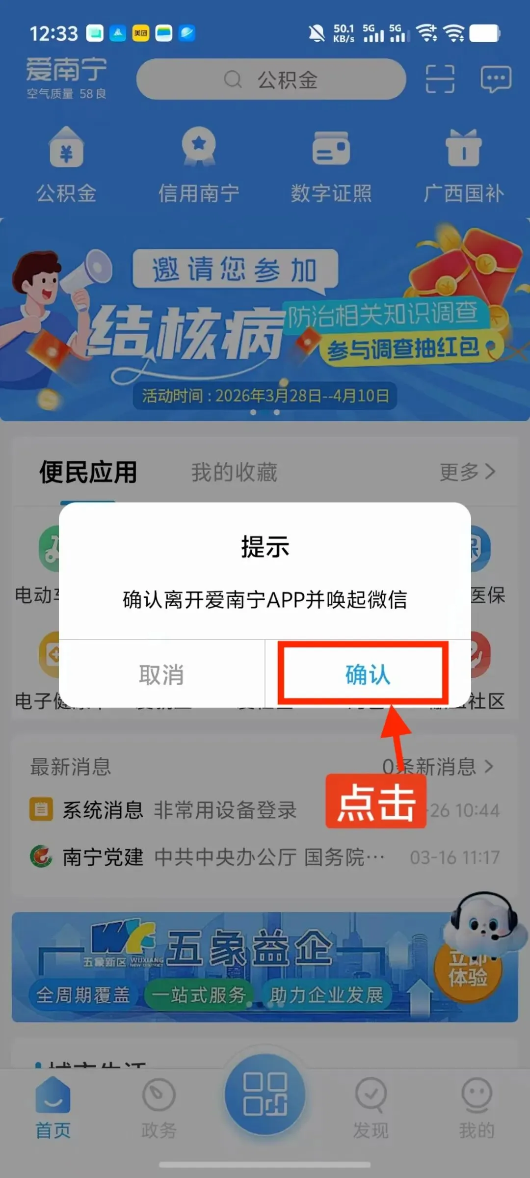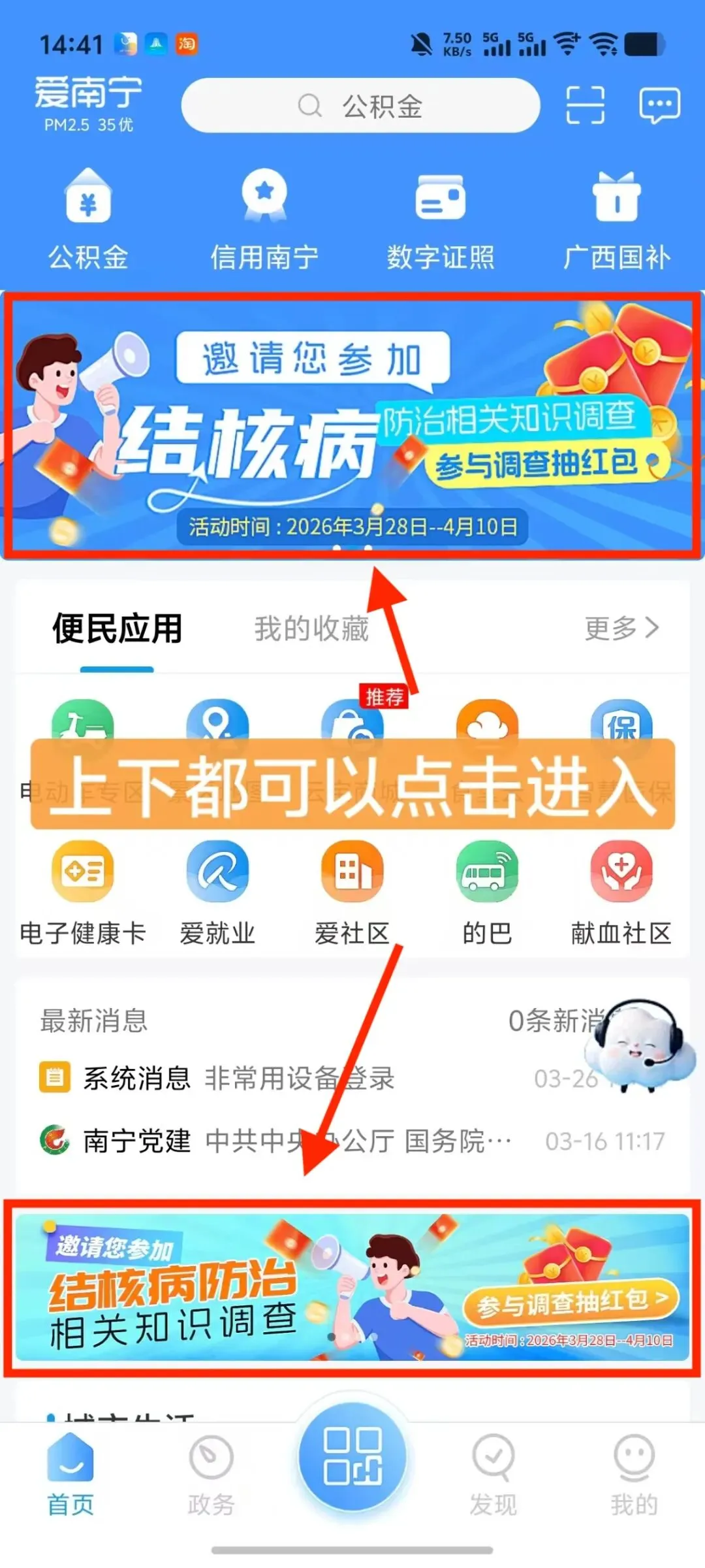 方式二:爱南宁APP→首页直接点击→跳转微信→开始答题
