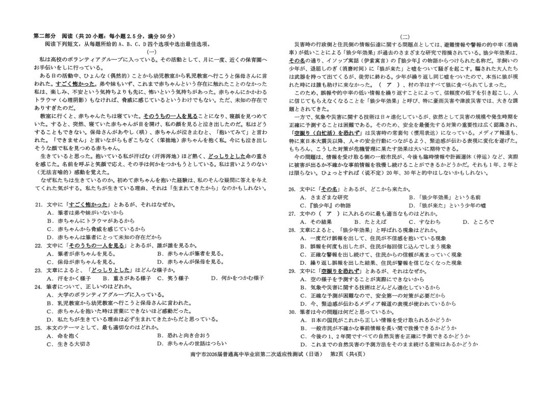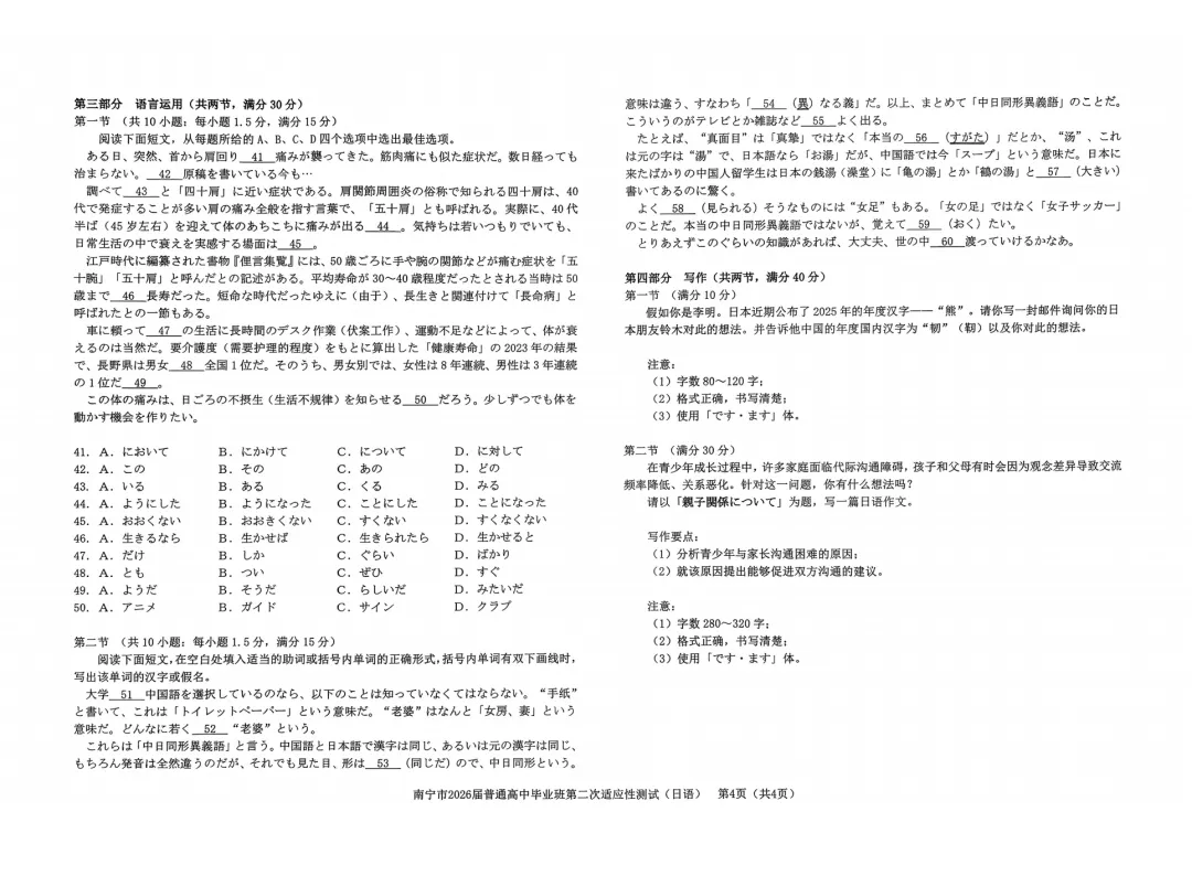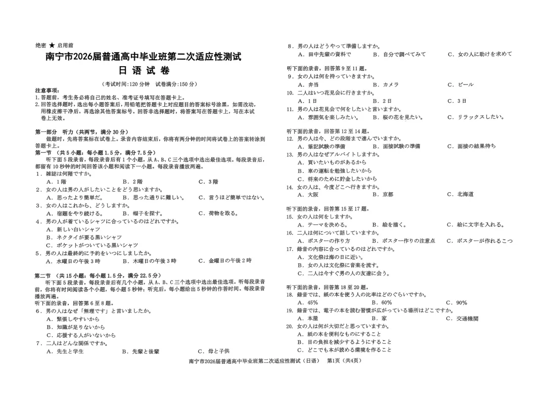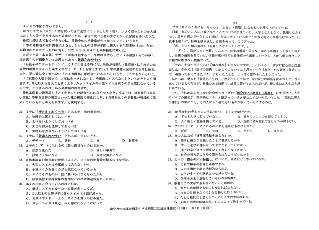 【首发】(附答案)2021年4月日语福州市高中毕业班第二次质量检测(附听力)