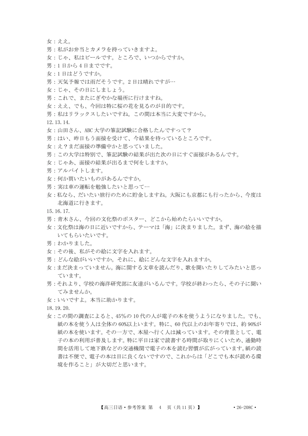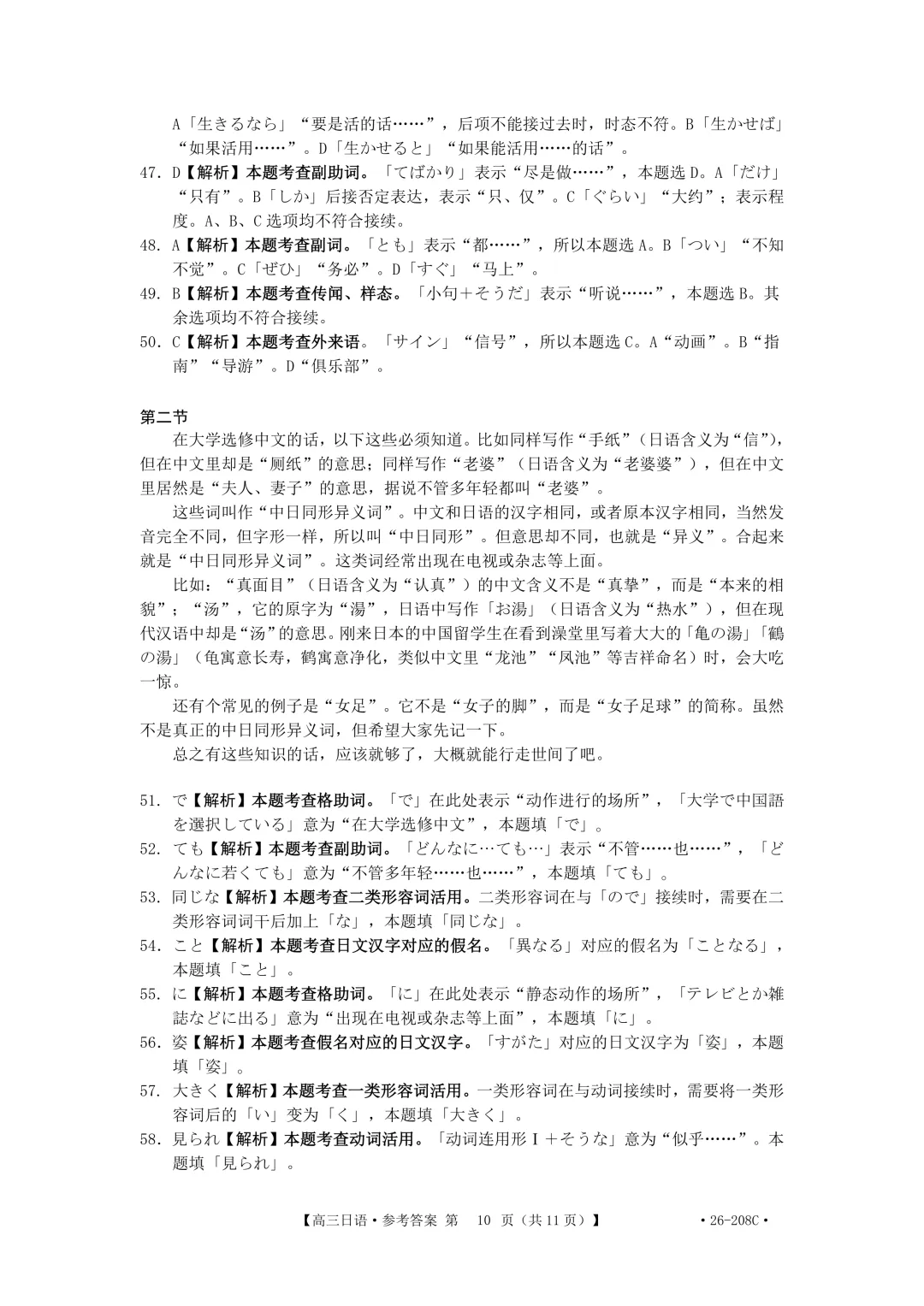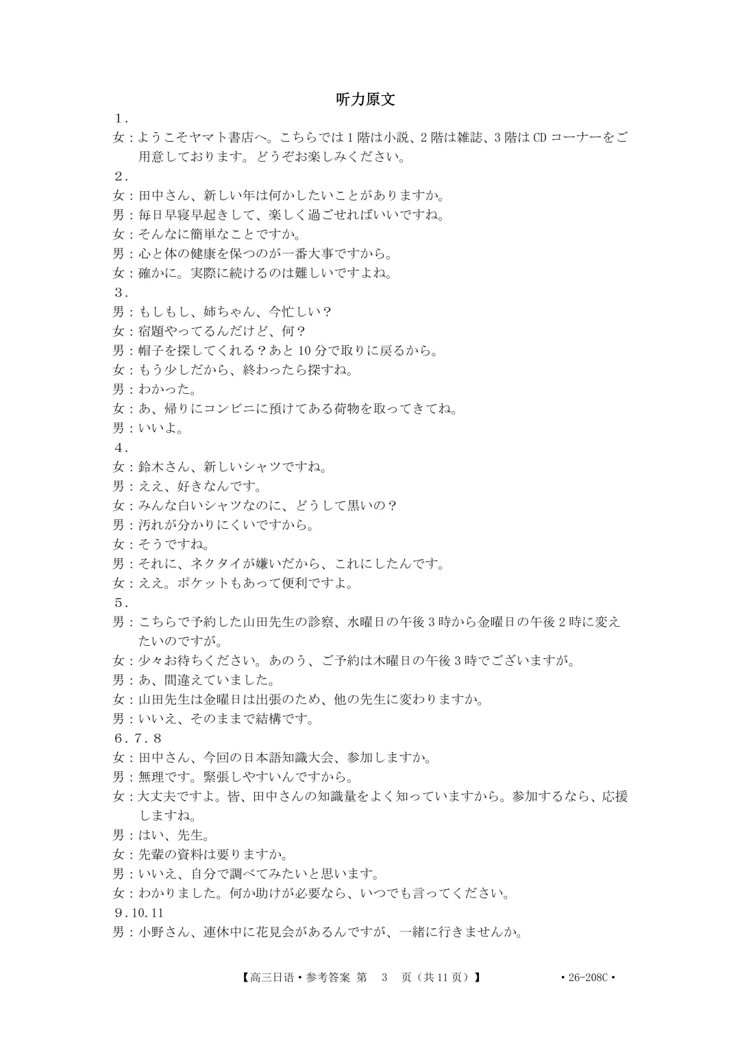 2021年1月福建省高中学业水平考试日语试卷+听力+答案(日语会考)