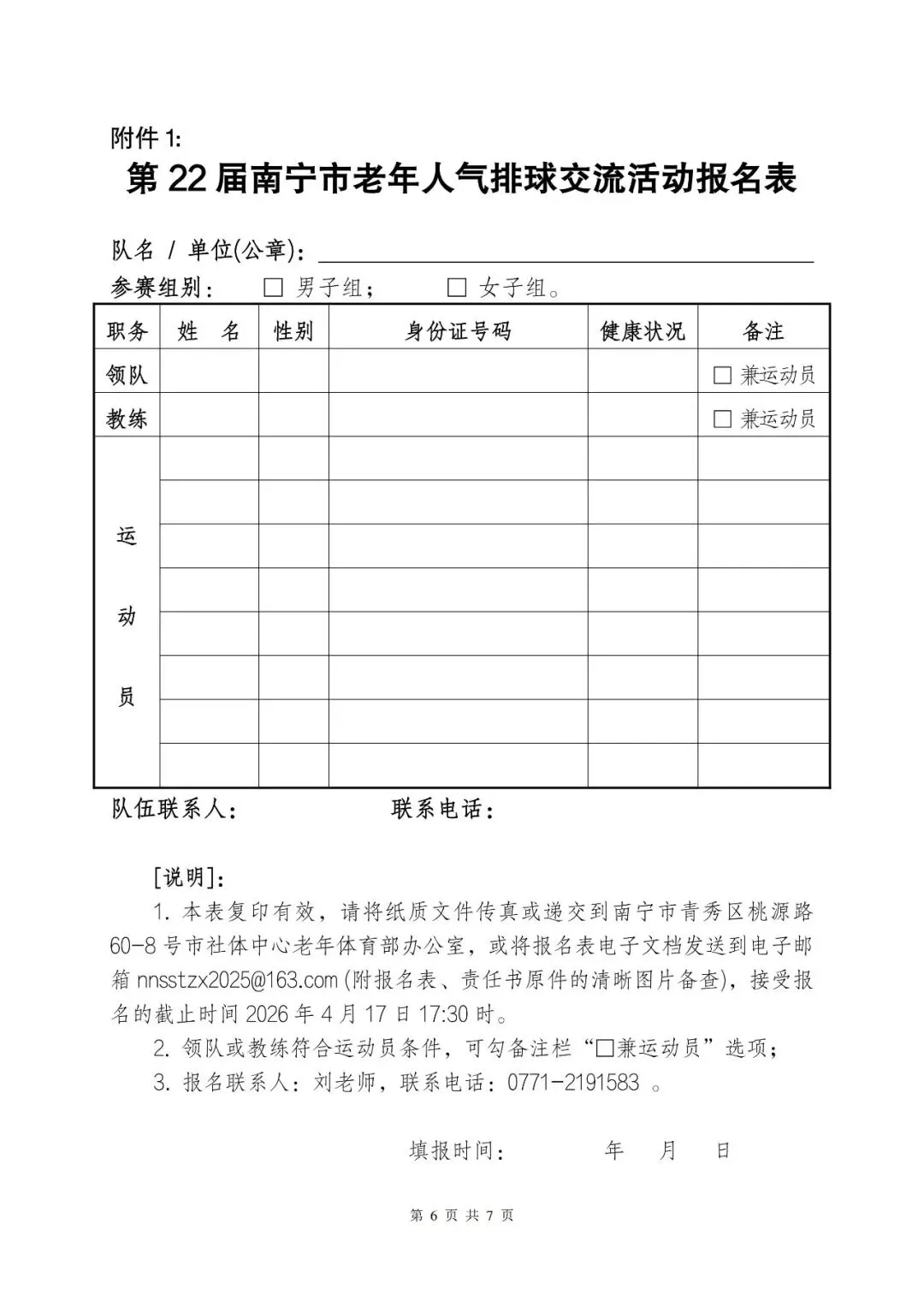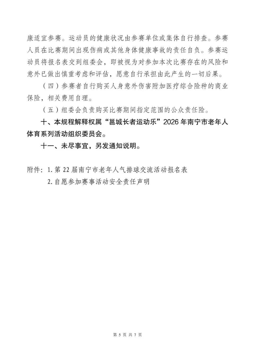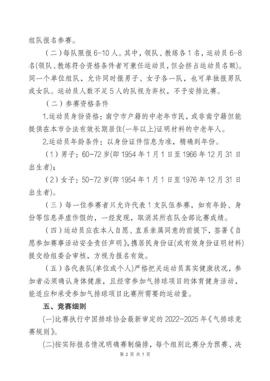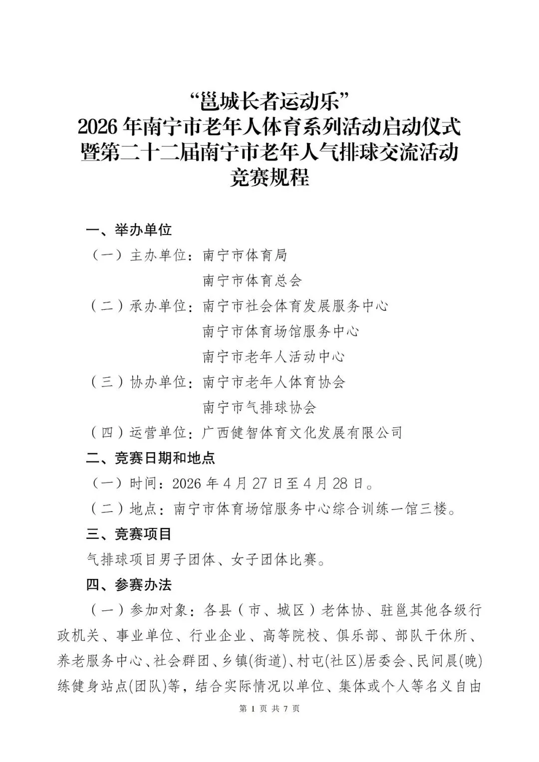 >第二十二届南宁市老年人气排球交流活动竞赛规程