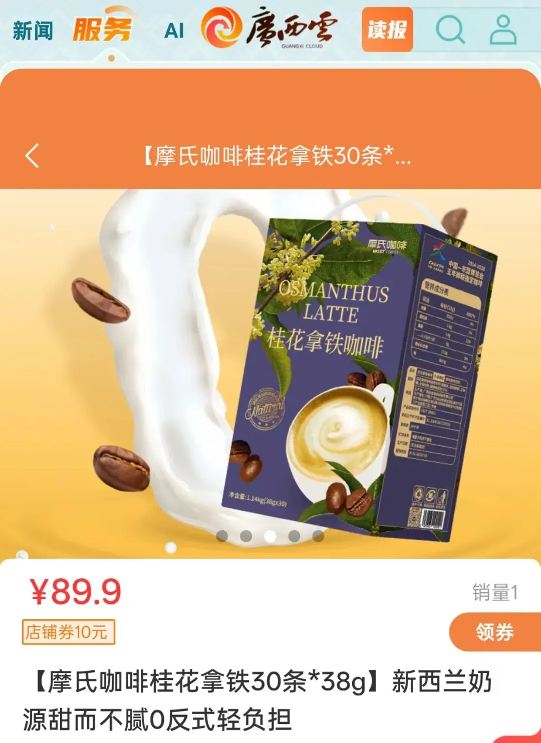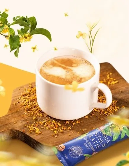 广西云-21号铺本期推荐的桂花拿铁融入金桂清香,浓郁香气清雅悠长。独立纯铝箔小条包装,轻巧易携带。食用时,只需热水冲泡,3秒即可还原咖啡馆现磨口感,无论是徒步间歇提神、野餐休闲慢享,还是自驾途中解乏,都能快速补充元气。