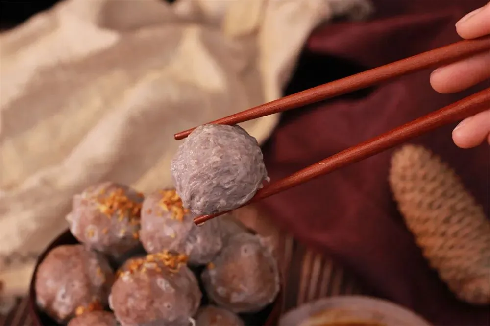 “米小牛”牛肉丸与黑土猪猪肉丸,经传统工艺手捶而成,劲道弹牙。