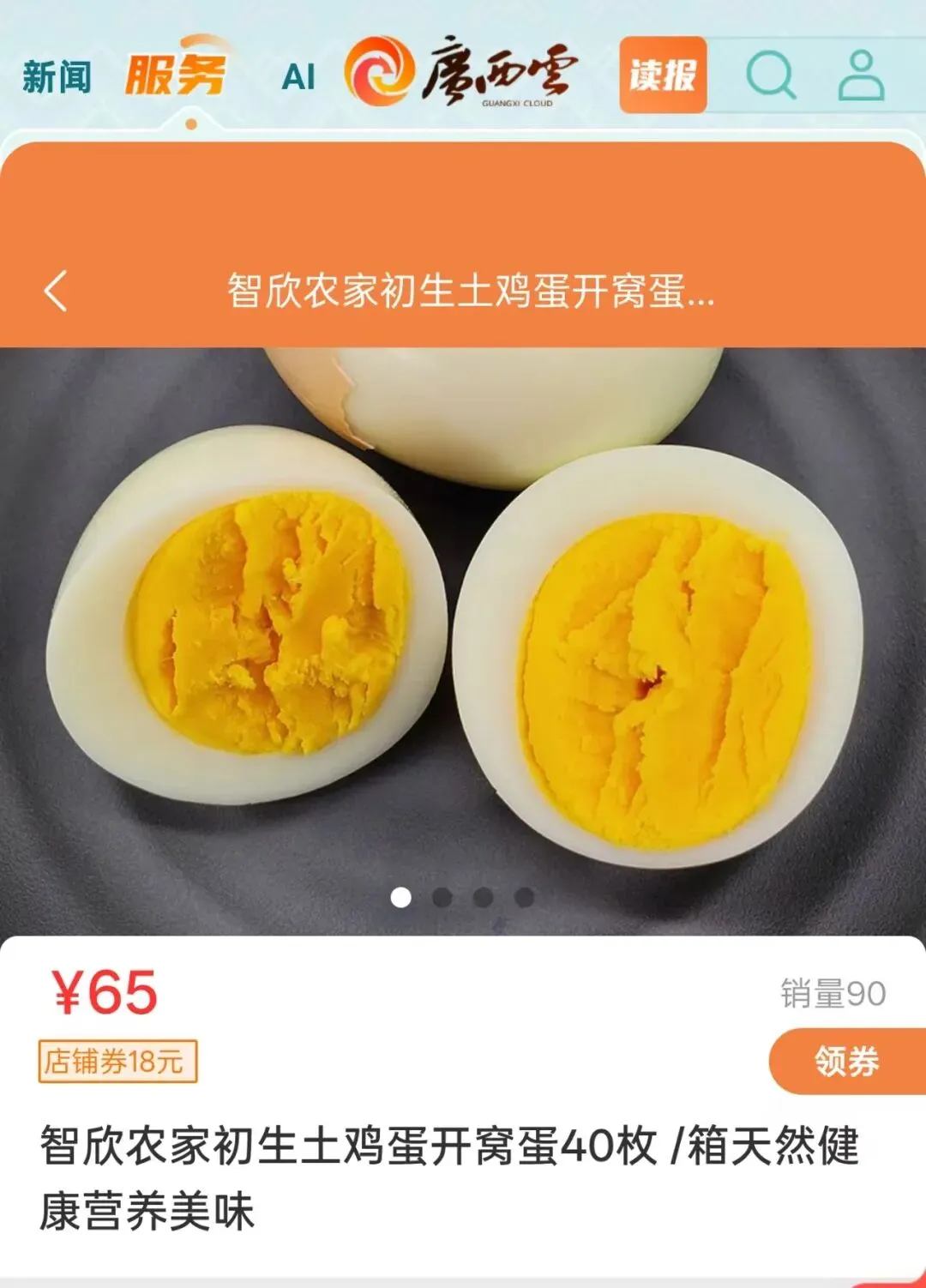 现在两款鸡蛋满99元减18元,广西云-21号铺为您从源头把控品质,现捡现发,用防震包装将新鲜直送到家。赶紧加入粉丝福利群领取优惠券下单吧!
