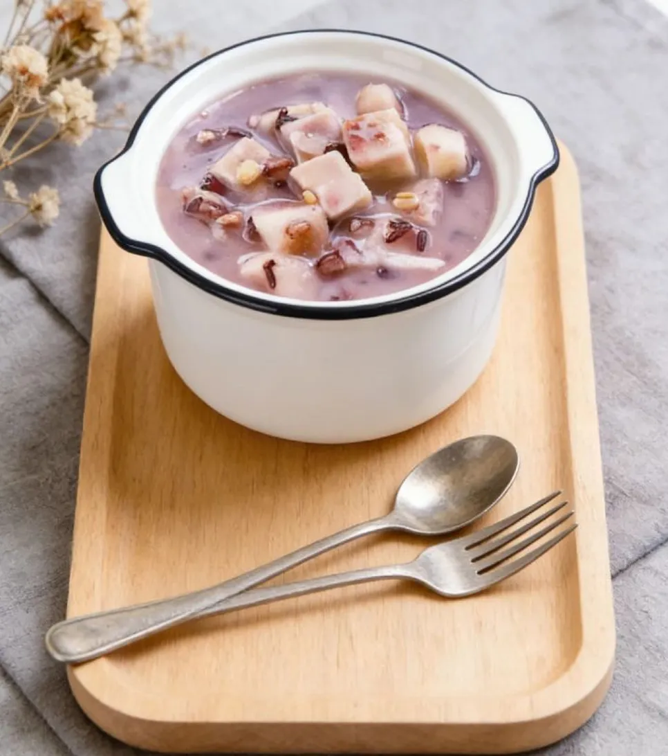 浓郁的芋香裹挟着马蹄的脆爽,墨米与糯米带来醇厚的米香和顺滑的口感,微甜恰到好处,既满足口腹之欲,又无负担感。开袋即食,也可冷藏、常温或加热食用,无论是作为踏春便携补给,还是办公室下午茶、睡前暖心小食,都能轻松适配。