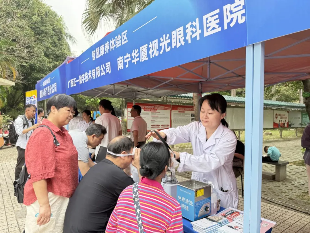 智慧康养展区成为中老年居民的热门打卡点。广西德心为民科技有限公司展出的AI舌诊仪、骨龄检测仪、炙疗仪,泰康人寿广西分公司的AI中医面诊检测与体脂秤测量,广西康久生物科技有限公司的AI中医脉象体测仪,南宁华厦视光眼科医院的干眼熏蒸机和智能筛查设备,广西正一数字技术有限公司的毫米波雷达、多参体征监测仪、心率血氧手表及AI中医问诊设备等,为居民提供了从中医体质辨识到健康监测的一站式服务。