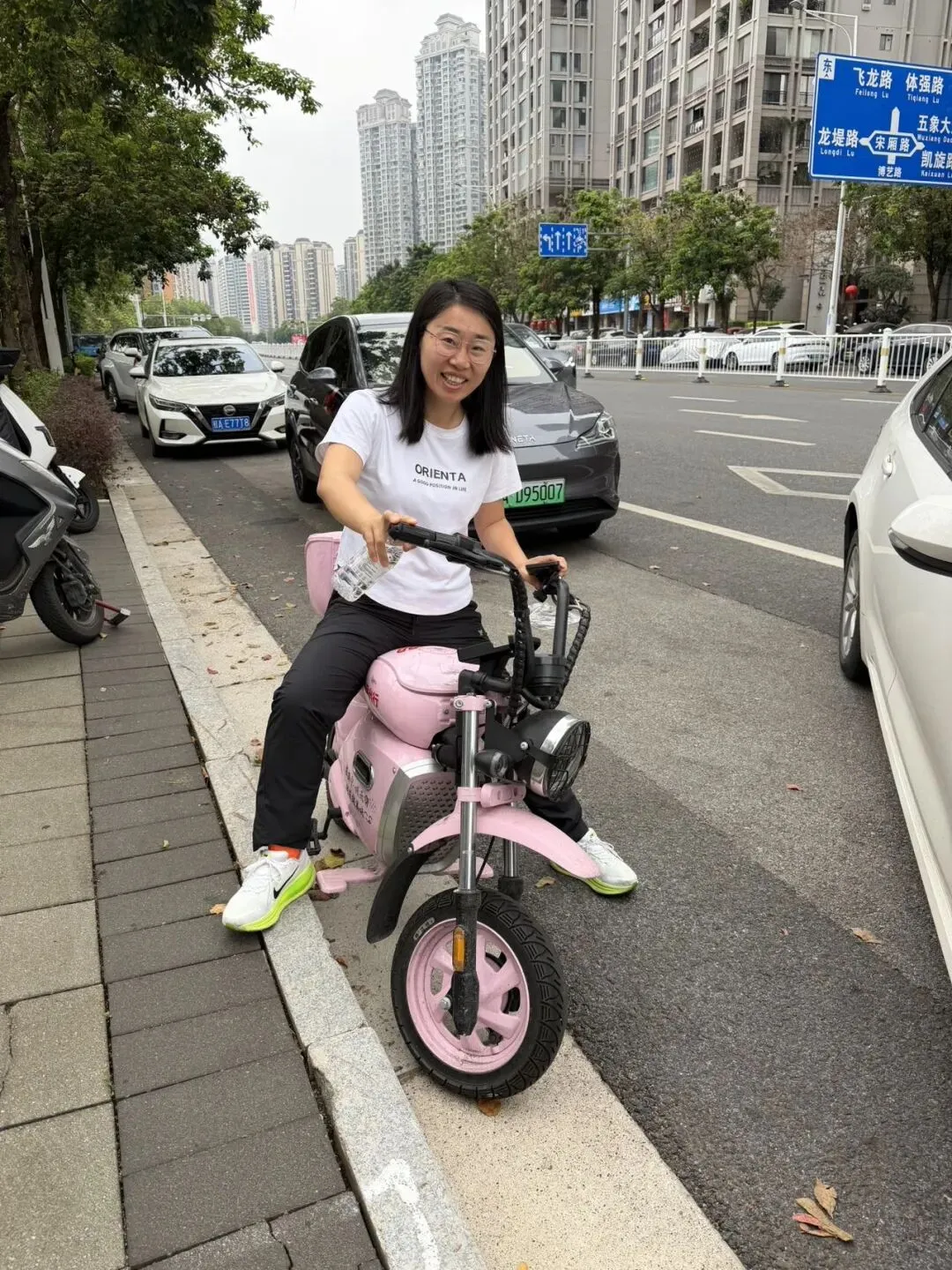 吃完饭,一起出来领参赛物资啦。马路上看到一辆超可爱的电动车,超级适合拍照打卡