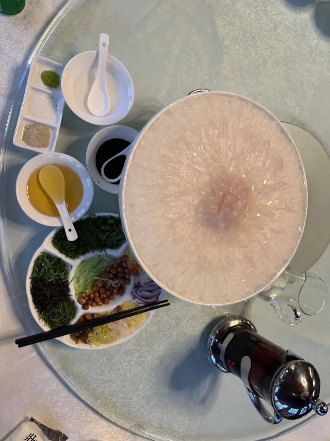 鱼生,第一次吃,晕车了,口里没味,眼睛看着很漂亮,耳朵听朋友们说好好吃