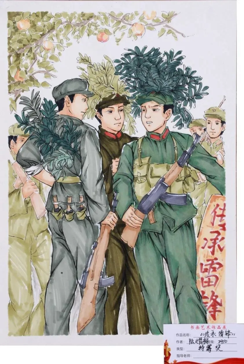 高一、高二年级同步推进主题黑板报与书画比赛,同学们用色彩描绘雷锋形象、用文字书写雷锋精神,专业评比让优秀作品成为校园里的鲜活教材。一幅幅作品尽显宏德学子的艺术素养与精神风貌,落实了全面发展的学生培养要求,彰显学校“活动丰校”的办学特色。