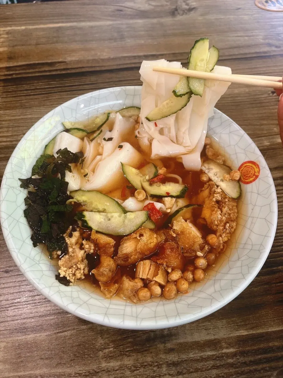 南宁夏日粉类天花板,宽扁粉皮冰凉爽滑,裹着酸甜卤汁,搭配烧肠、炸黄豆、黄瓜丝,酸香不腻、一口降温。老话说 “夏天吃酸粉,病猫都精神”,闷热午后一碗下肚,瞬间满血复活。