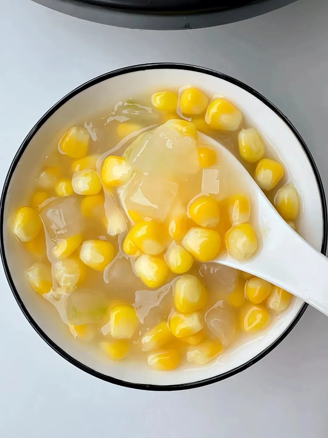 饱满甜玉米 + 红糖冰渣,颗颗爆汁,奶香与甜香交织,童年回忆拉满,清爽不齁甜,老少皆宜。