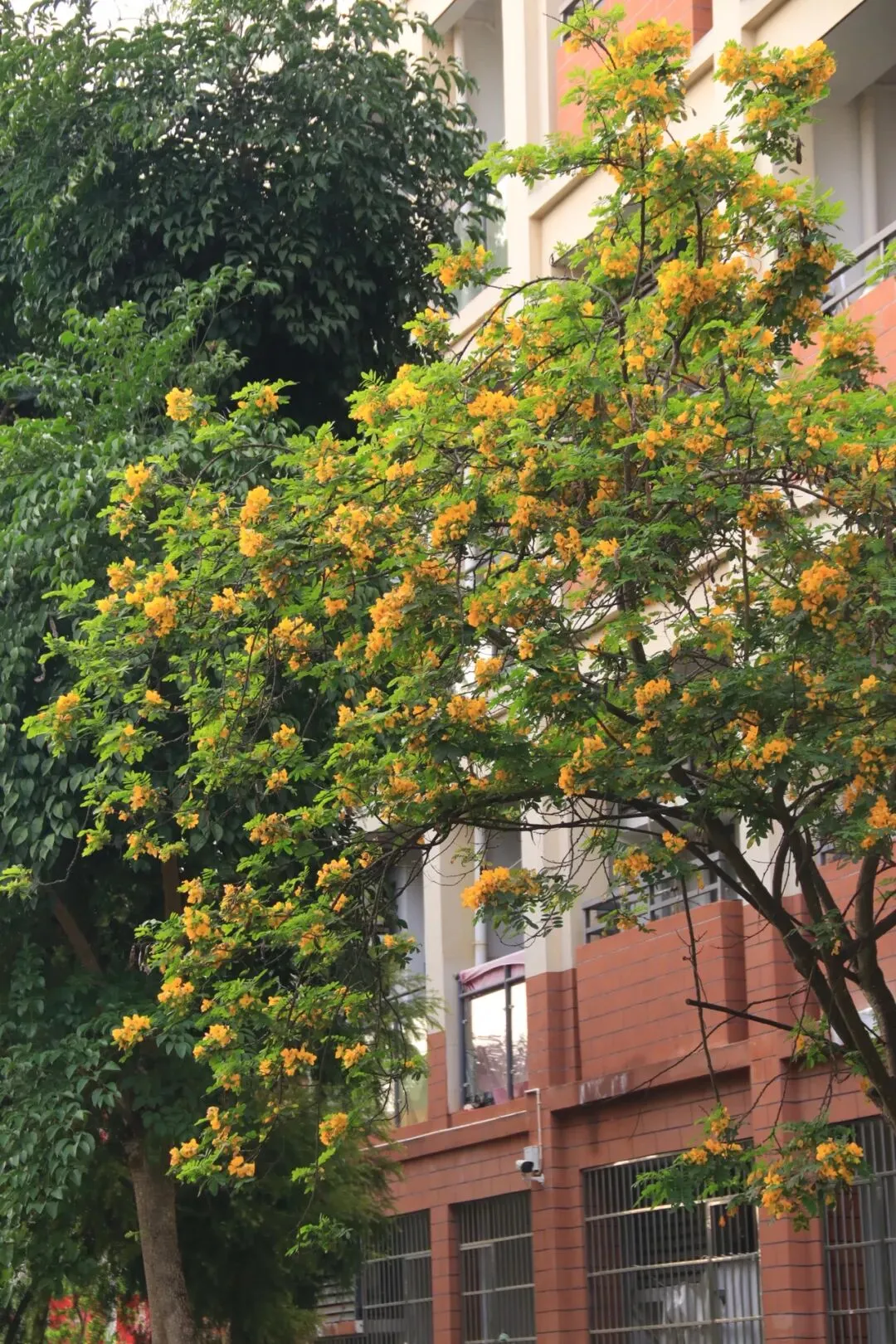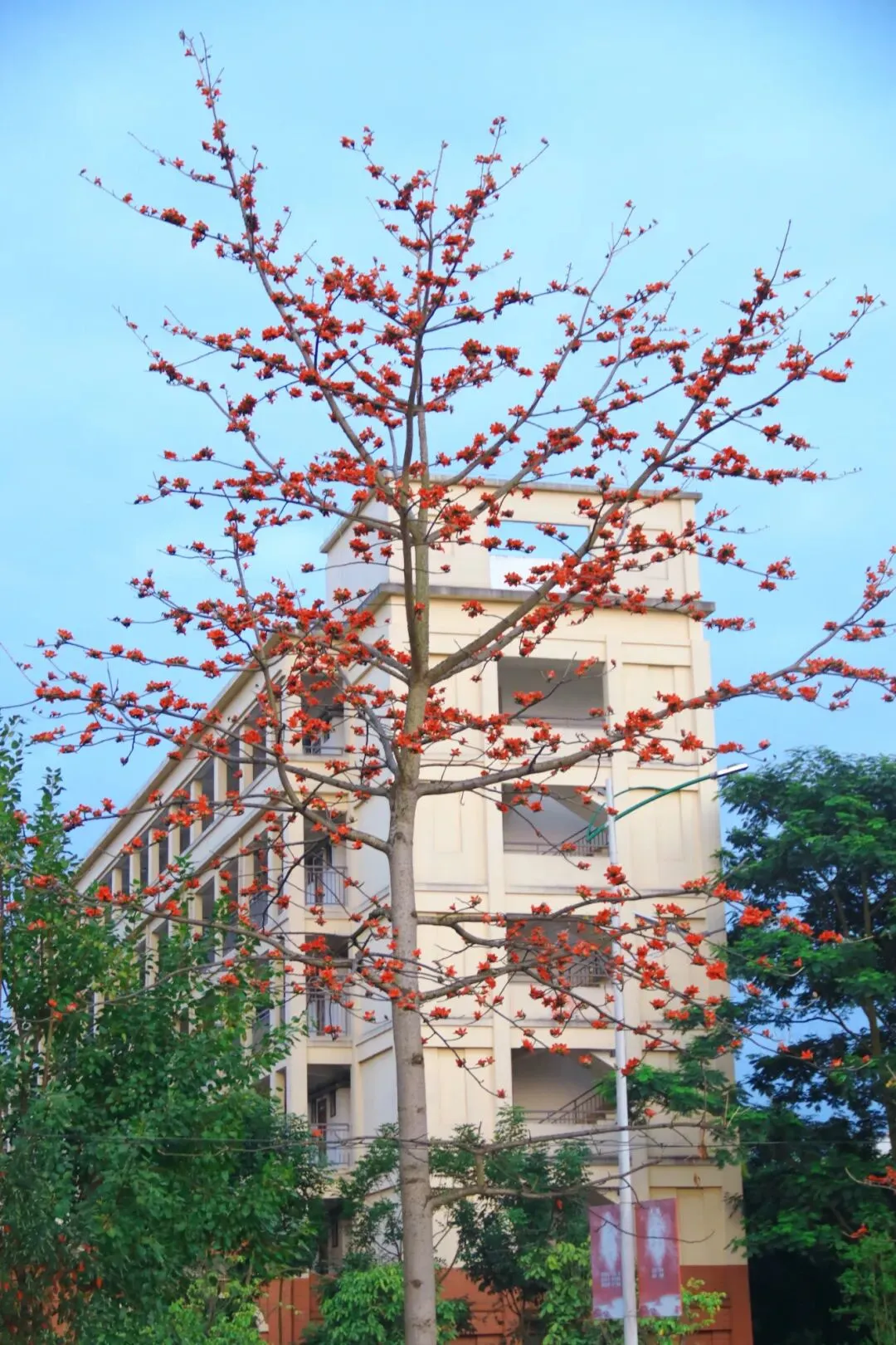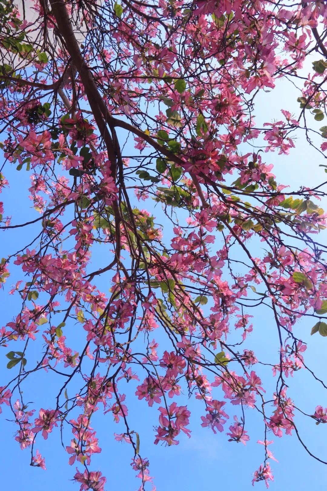 以前总觉得,春天得去南宁市区的公园才能找到。直到这个没课的下午,我扫上那辆2.9元一学期随便骑的青桔小单车,在校园里慢悠悠转了一圈,才真正体会到——原来从房子里走出来,就能站在春天中间。(这里必须要无广夸夸青桔,2.9元骑一个学期的骑行卡对学生党来说太实惠了!)平时上课、吃饭、回宿舍,三点一线的日子过得太匆忙。路过的花花草草,从来没认真看过。周末一有空,就想着往市区跑,总觉得外面的春天才好看,却忘了低头看看自己天天待的校园。体育馆旁的紫荆花开得正盛,粉紫色的一大片,风一吹就往下掉花瓣,走在树下像踩在花路上。偶尔路过几个骑着单车经过的同学,这不就是青春的样子吗?我慢慢走进漫天花簇里,风裹着淡淡的花香拂过发梢,指尖轻触柔软的花瓣,举起镜头,也怀着满心温柔,认真定格下它们一年里最明媚、最动人的盛放模样。教学楼旁的夹竹桃也悄然开了,粉白相间的小花朵挨挨挤挤,簇拥在翠绿的枝叶间,热热闹闹地绕着台阶层层铺开,风一吹,便轻轻摇曳,把春日的温柔都揉进了校园的角落。还有几棵木棉花特别扎眼,光秃秃的枝桠上挂满了橙红色的花,像一团团小火球,衬得宿舍楼很好看。沿路还看到一大片黄槐决明,叶子细细碎碎的,枝头开满小黄花,一丛一丛的,风一吹就轻轻摇,为校园的春色添了一抹明亮的暖黄。