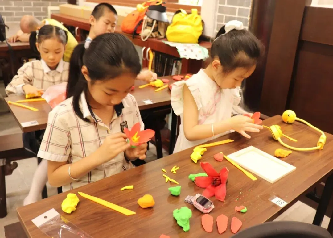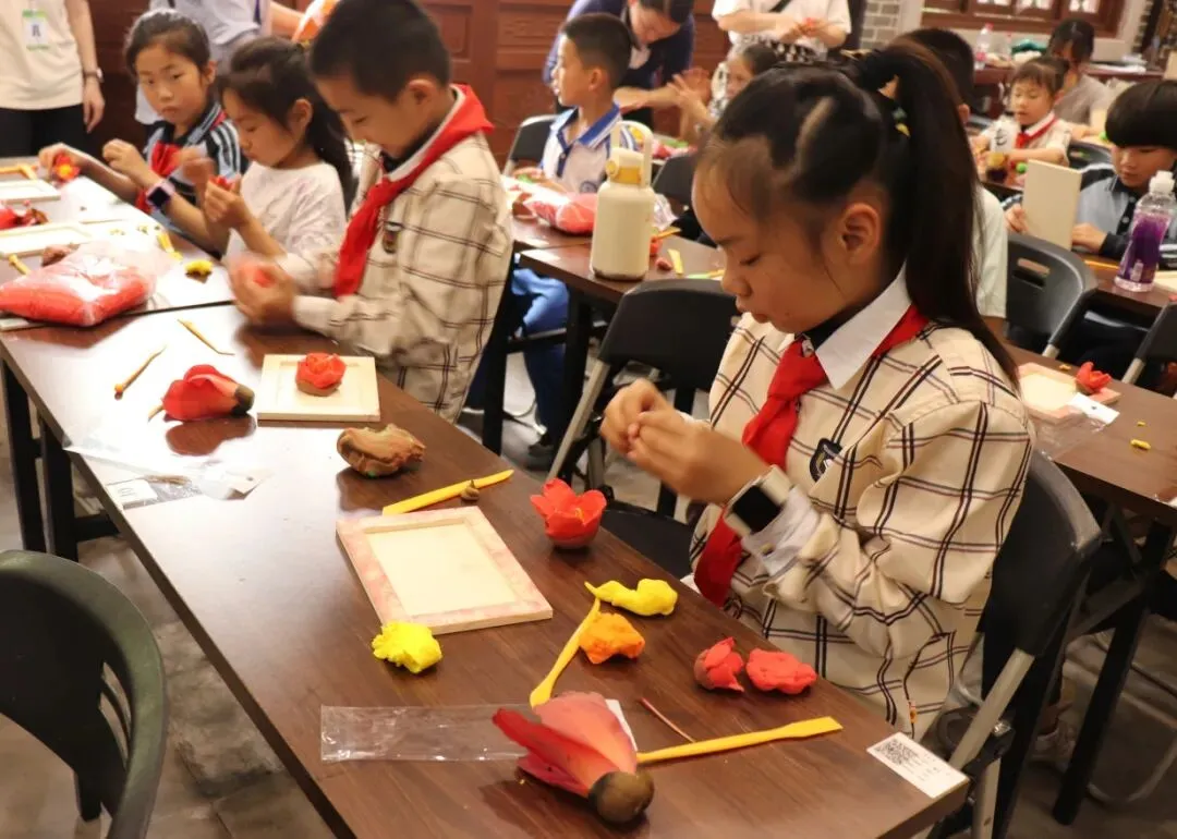 紧接着,大家移步白龙书院心学堂,用超轻黏土制作“永不凋谢的英雄花”。搓圆、压扁、捏角、加蕊,孩子们神情专注,指尖翻飞,将对英烈的崇敬之情融入每一个细节,一朵朵栩栩如生的木棉花在手中悄然绽放。