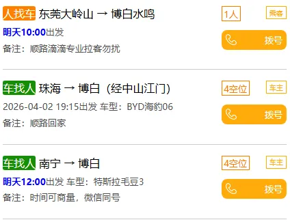 【3月29日】清明节博白往返南宁、广州、深圳、珠海等拼车最新信息!