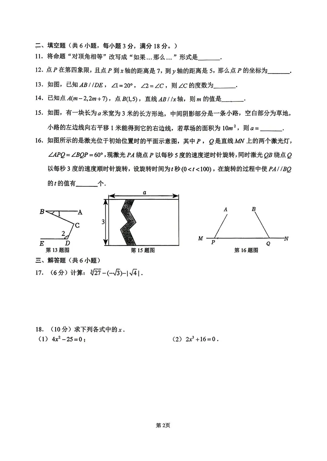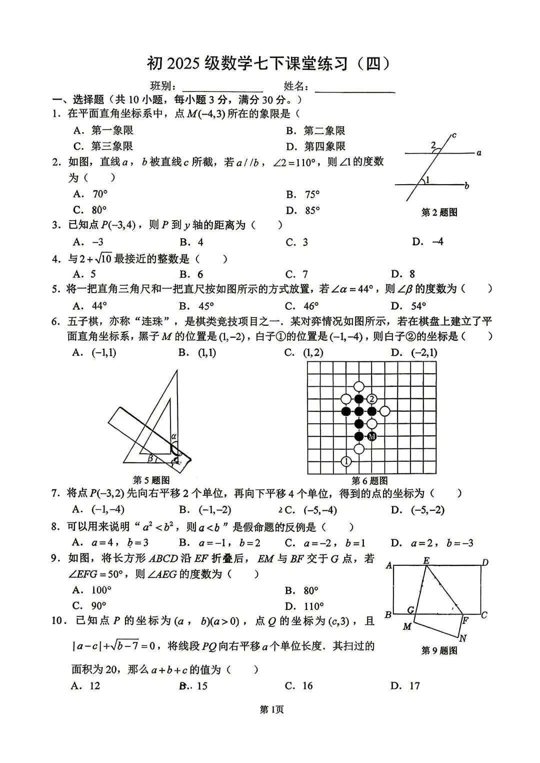 >2026年春季学期南宁三美七年级数学随堂练习四来啦
