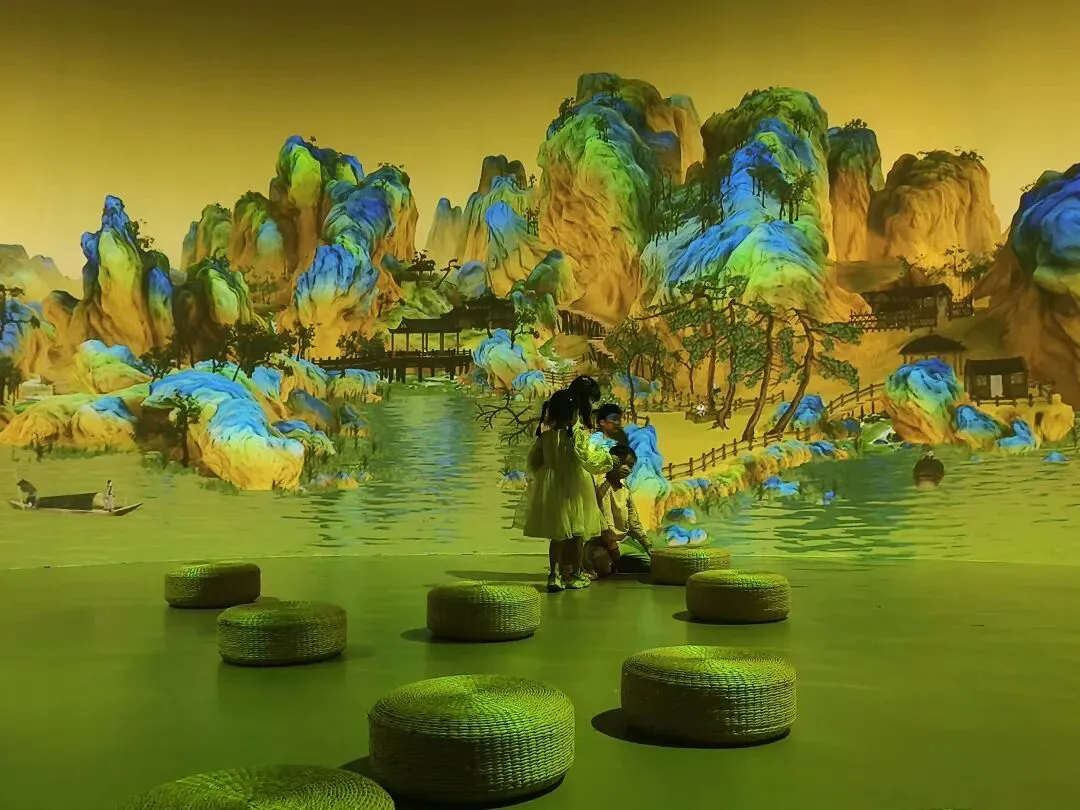 美术馆很大我只在二楼转了一圈,里面的绘画作品好像都是复制品,毕竟真的画很珍贵也不会摆放出来,二楼的沉浸式影厅观感还不错,屏幕360度环绕,3D动画效果很逼真,给人一种身临其境的感觉。