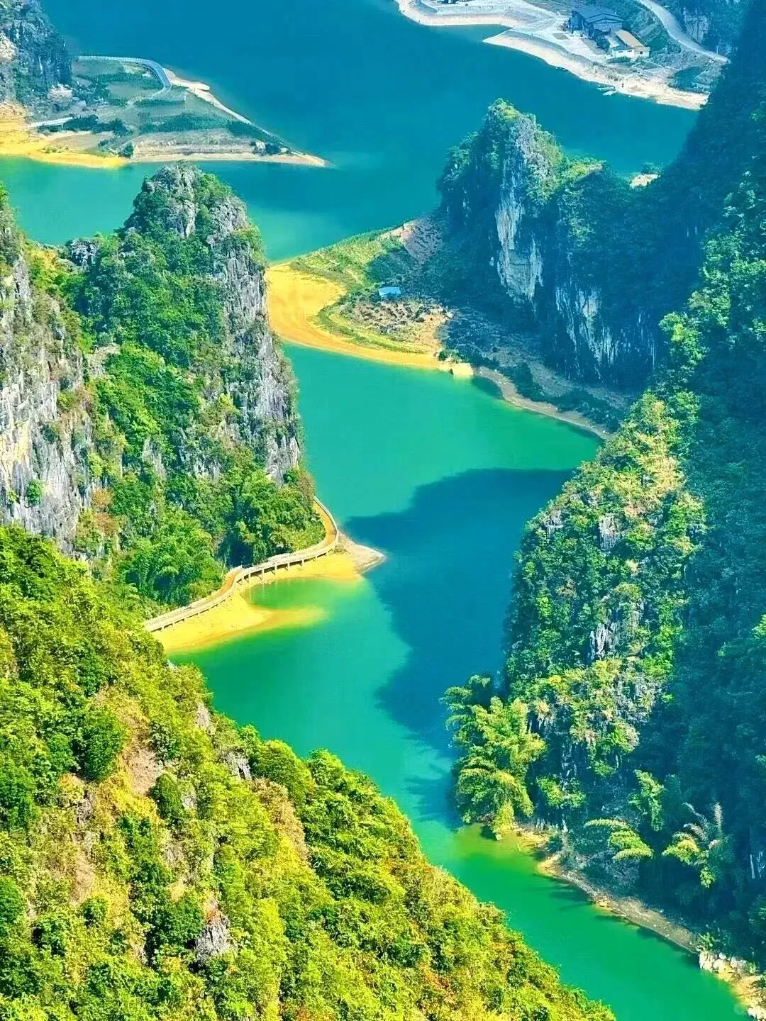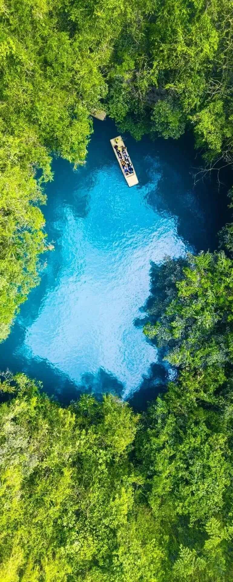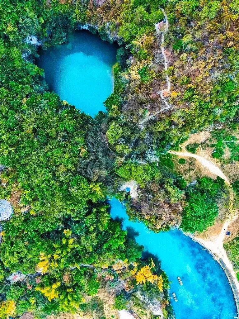 ✬【三门海】独特的喀斯特地貌,深邃的岩溶天窗,绝对满足你对神秘大自然的所有幻想,因它发育有三个天窗,乘船入内,体验“山中有海、海上有门”的奇妙感觉,故而得名。当游船缓缓靠近洞穴,你会发现自己仿佛走进盗墓笔记的世界,七个岩溶天窗神秘深邃,喀斯特地貌,让人不禁感叹鬼斧神工。湖面平静如镜,任何相机都难以完全捕捉它的美,阳光洒下时,湖水呈现出温柔的蒂芙尼蓝色玻璃海,最神奇的是,这里冬暖夏凉,温度常年保持在22度左右,坐在船上,伸手触摸河水有温润舒适的感觉。