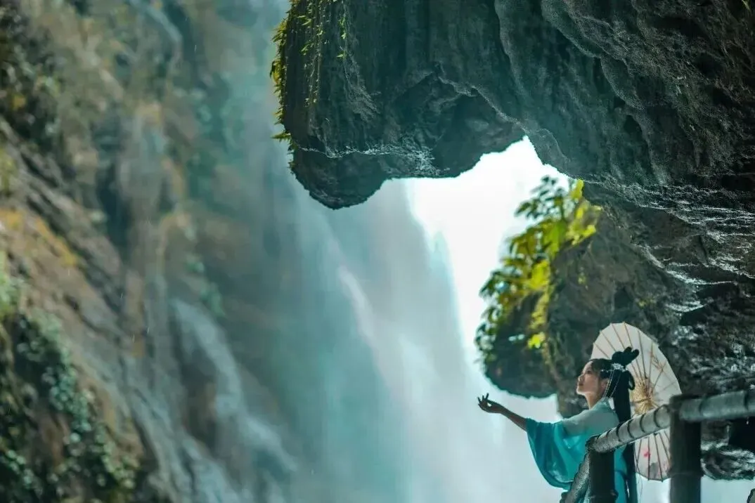 ✬ 【古龙山大峡谷】(车程40分钟,徒步游览90分钟,已含景区接驳车)。峡谷内有幽深旷野的峡谷风光,苍莽浩瀚的原始森林,物种丰富的原始植被,珍贵稀少的奇花异草,气势磅礴的谷底河流,形态各异的溪流奇石;丰富的原始植被;穿越古龙峡途中观赏单级落差128米,宽约60米凌空飞泻、蔚为壮观的古龙大瀑布。全长1180米美轮美奂的古龙溶洞和神秘莫测的地下暗河,还可以欣赏到峡洞三绝--“鲤鱼喷玉”、“金龙吐珠”和“童子功夫”。探寻一个亿万年前形成的地下溶洞世界,新奇刺激的体验绝对不虚此行......。古龙地下暗河溶洞探秘后,继续游览新桥峡,玻璃桥体验,您将欣赏到12个美如画卷的瀑布群景观…… (徒步困难或行动不便的游客可选择升级三峡二洞经典漂流,费用自理)。