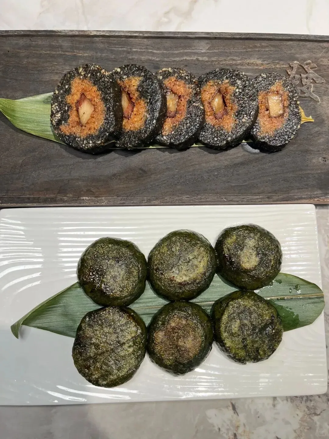 再配上软糯带着草本清香的艾叶粑粑和黑糯米卷,这一顿真的是把地方风味展现得淋漓尽致,越吃越让人觉得惊喜。