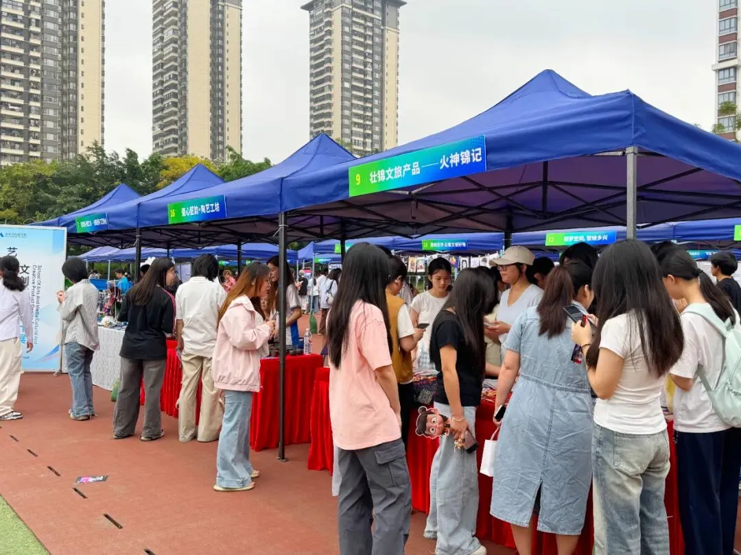现场设置的青年创意市集展区,展示了一系列高校毕业生创新创业项目以及国潮设计、非遗制作等技能项目成果,营造校园创业创新氛围,激发创业活力。