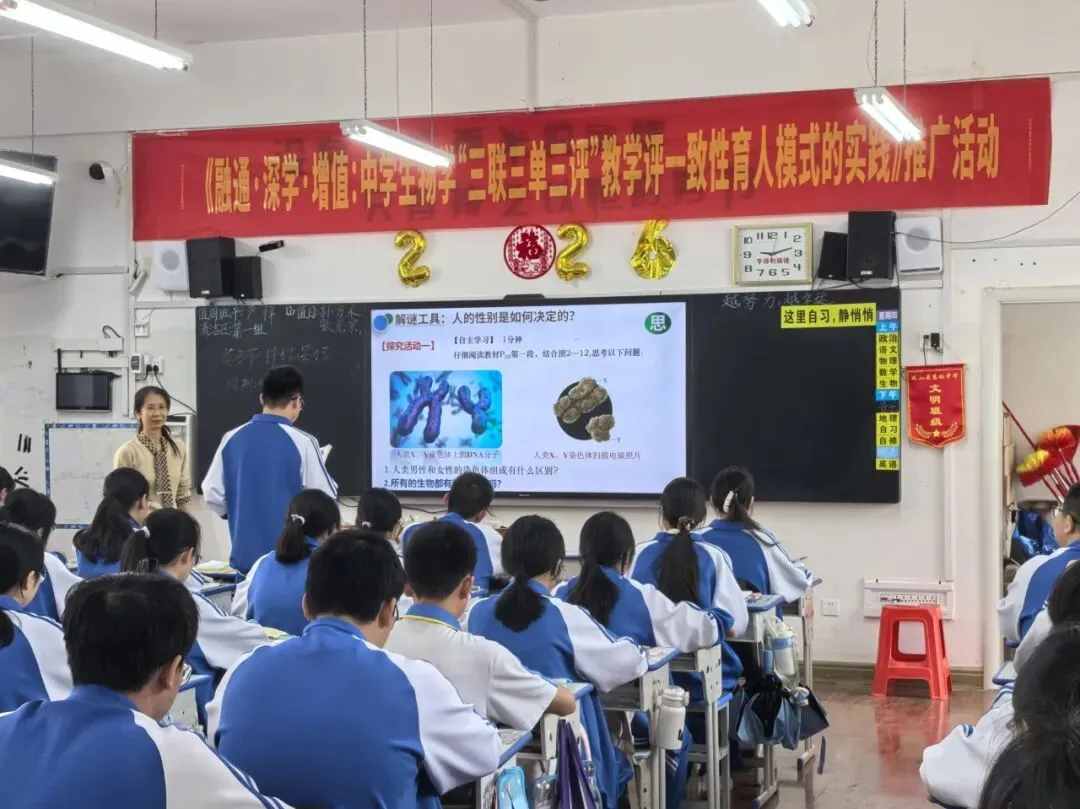 教研不止于课堂。活动中,南宁外国语学校杨菲婷老师带来专题讲座《融通深学,增值育人——中学生物学“三联三单三评”教学模式创新实践》。